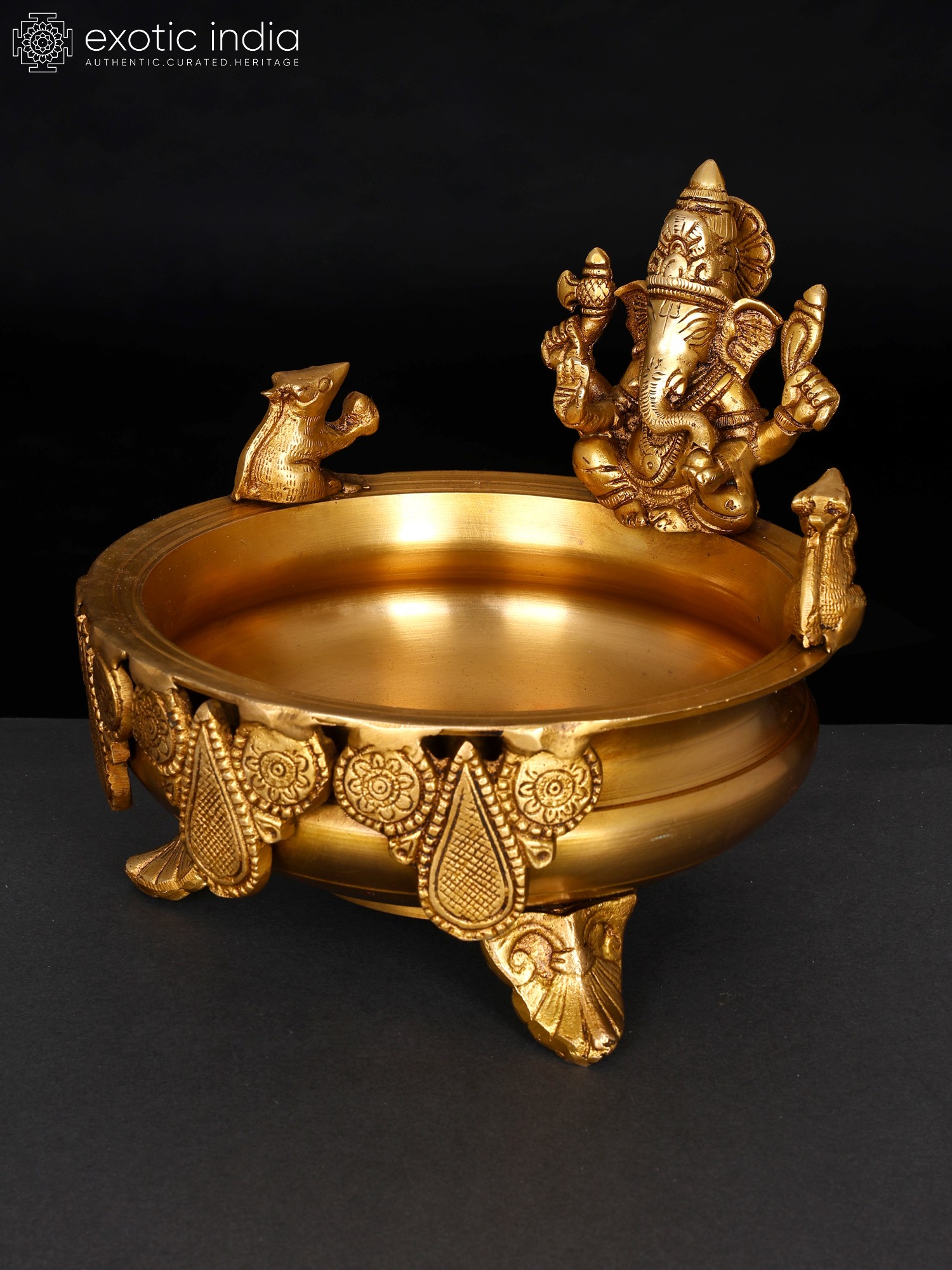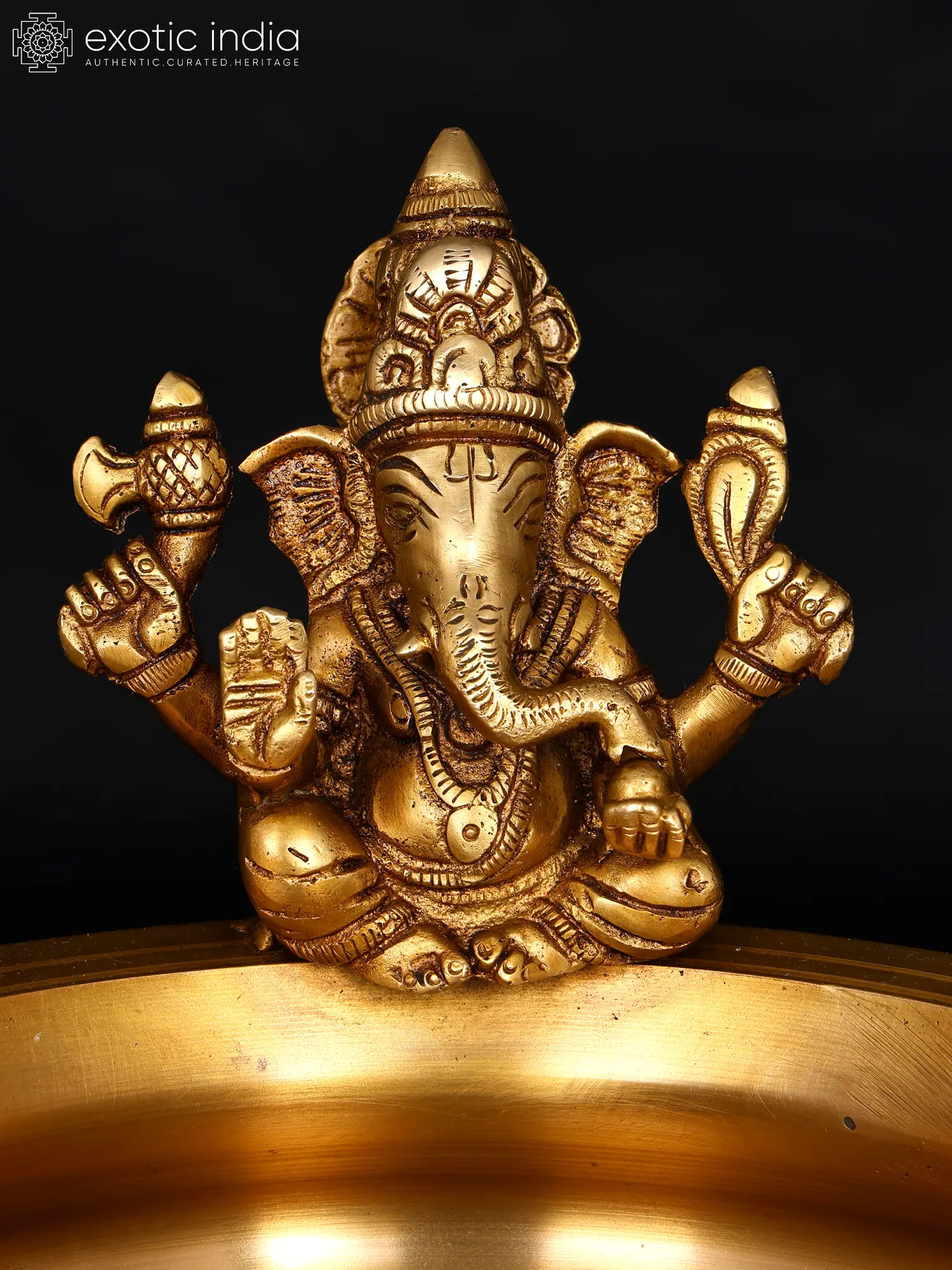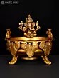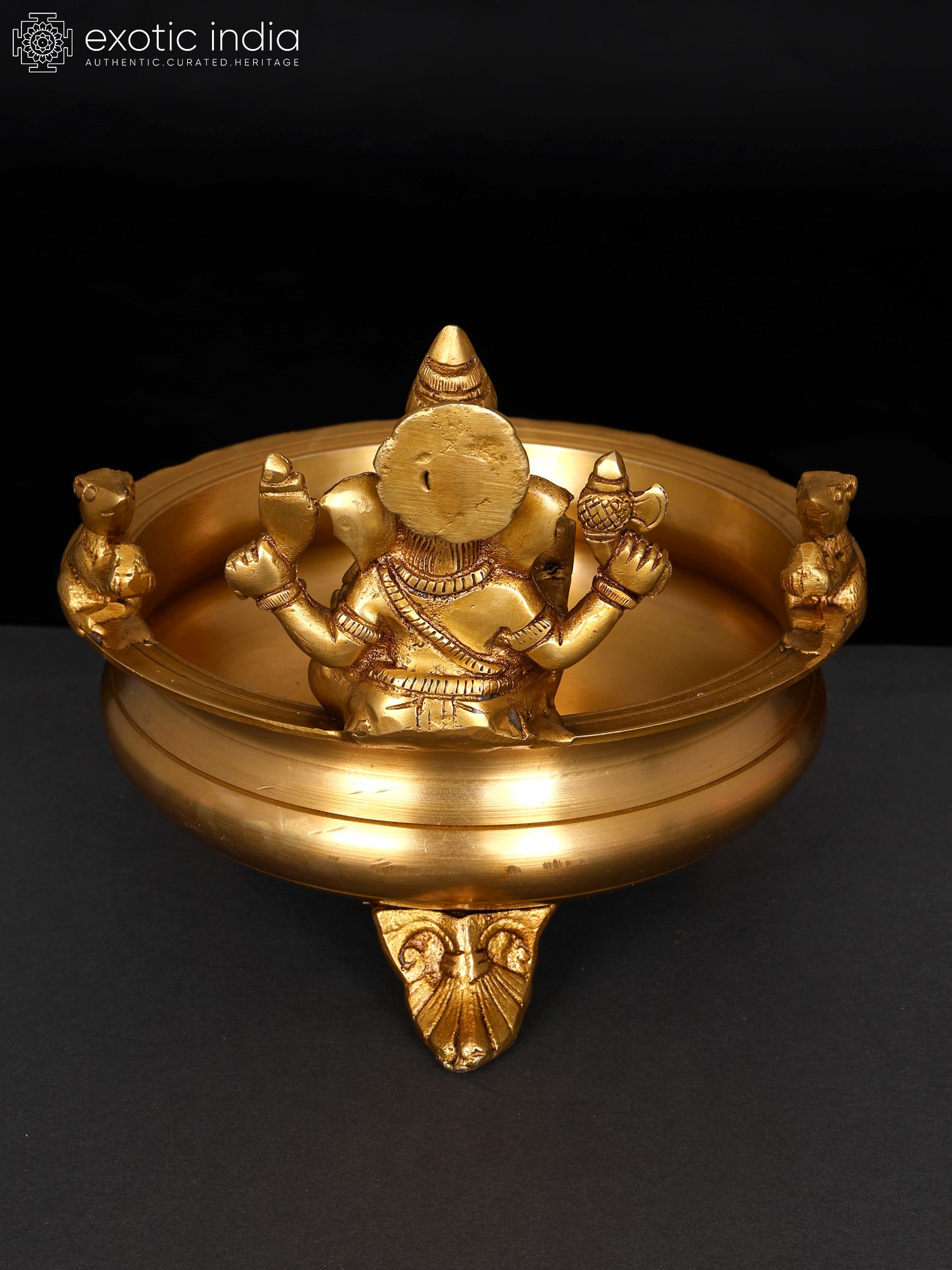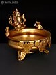 8" Relaxing Ganesha Idol with Cushion | Handmade Brass Statues | Made in India