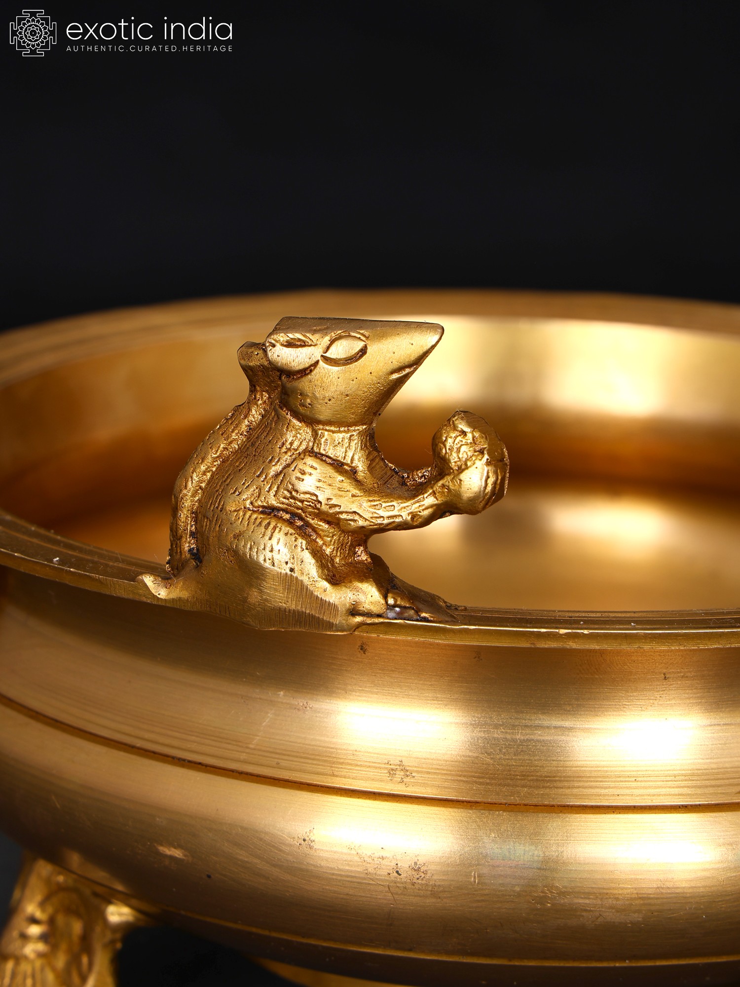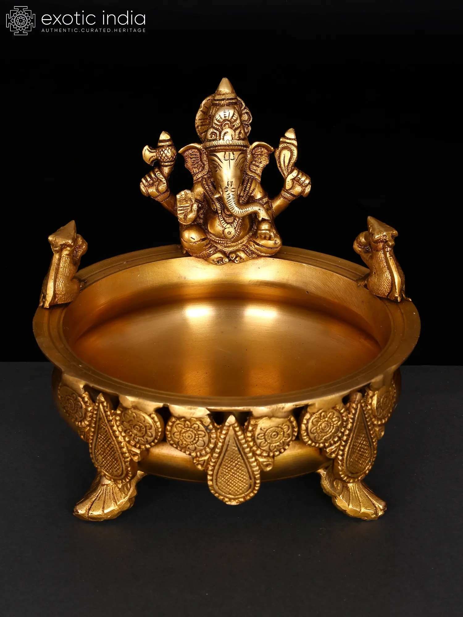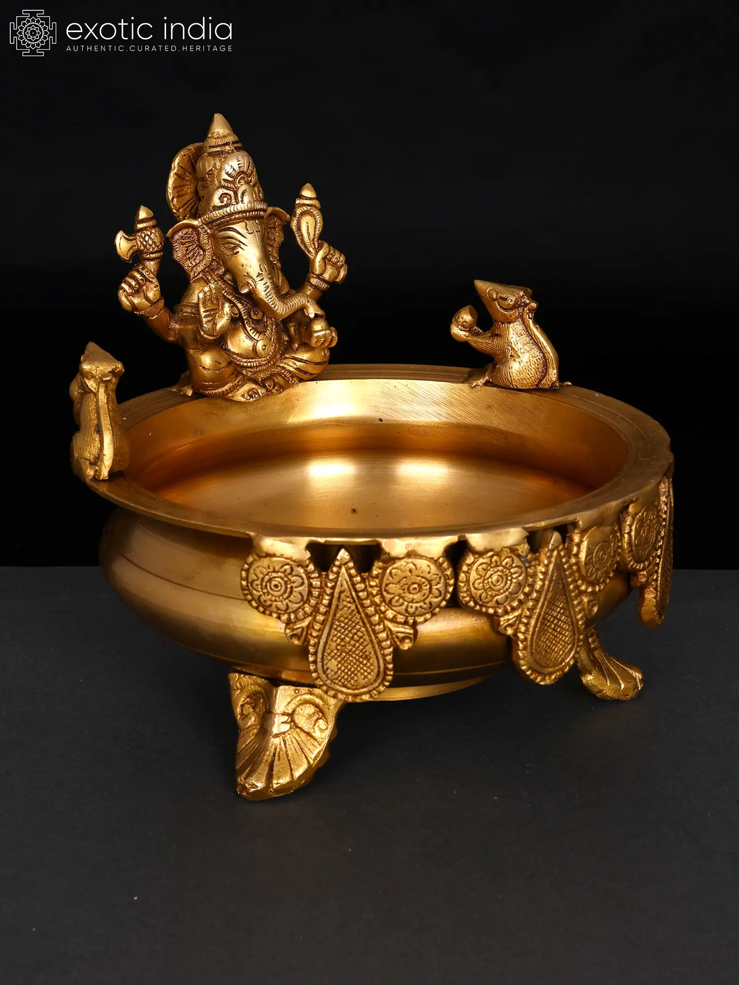 8" Relaxing Ganesha Idol with Cushion | Handmade Brass Statues | Made in India