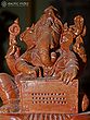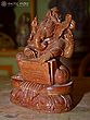8" Lord Ganesha Playing Harmonium | Orissa Red Stone Statue | Exquisite Handmade Indian Art