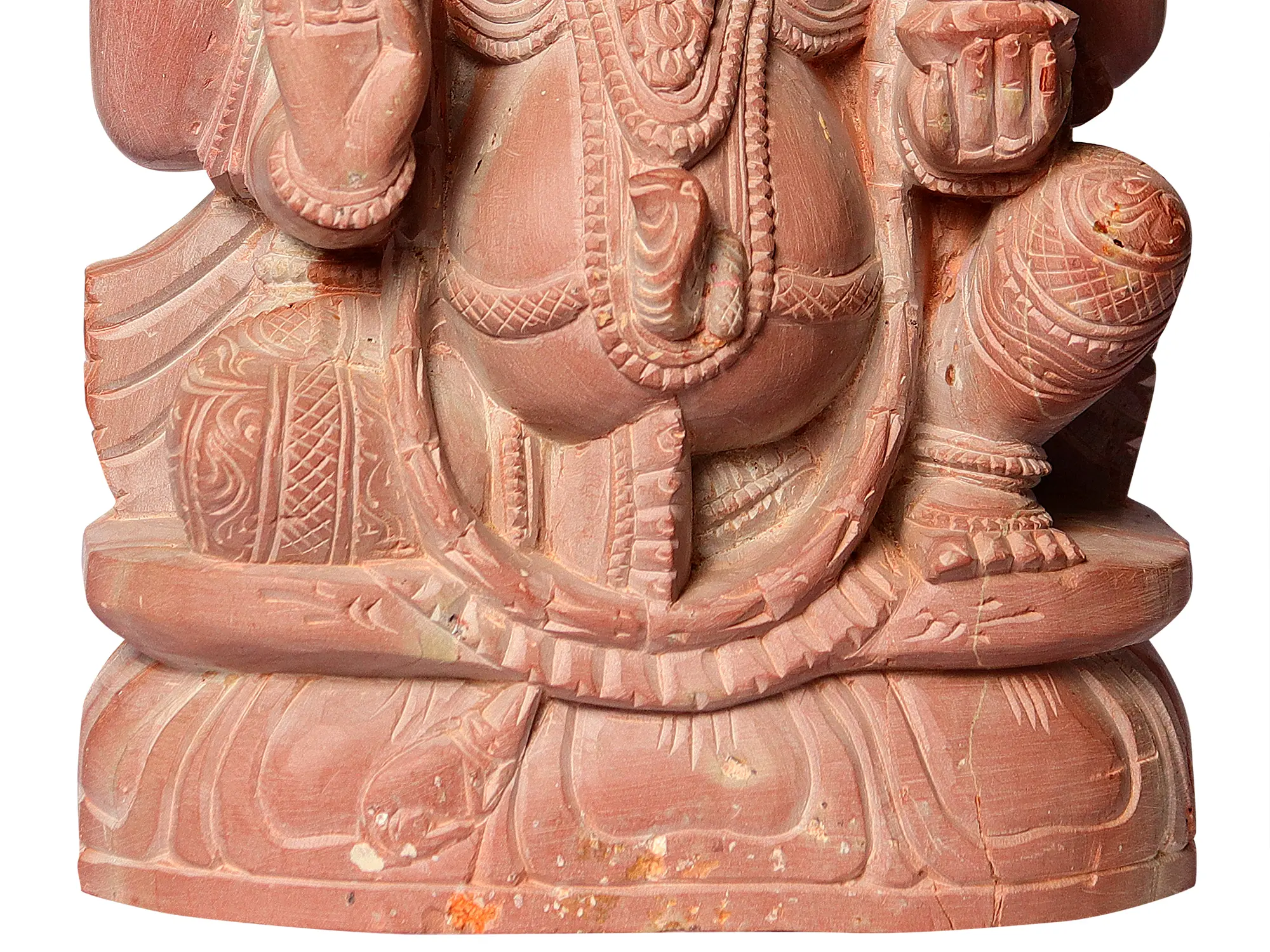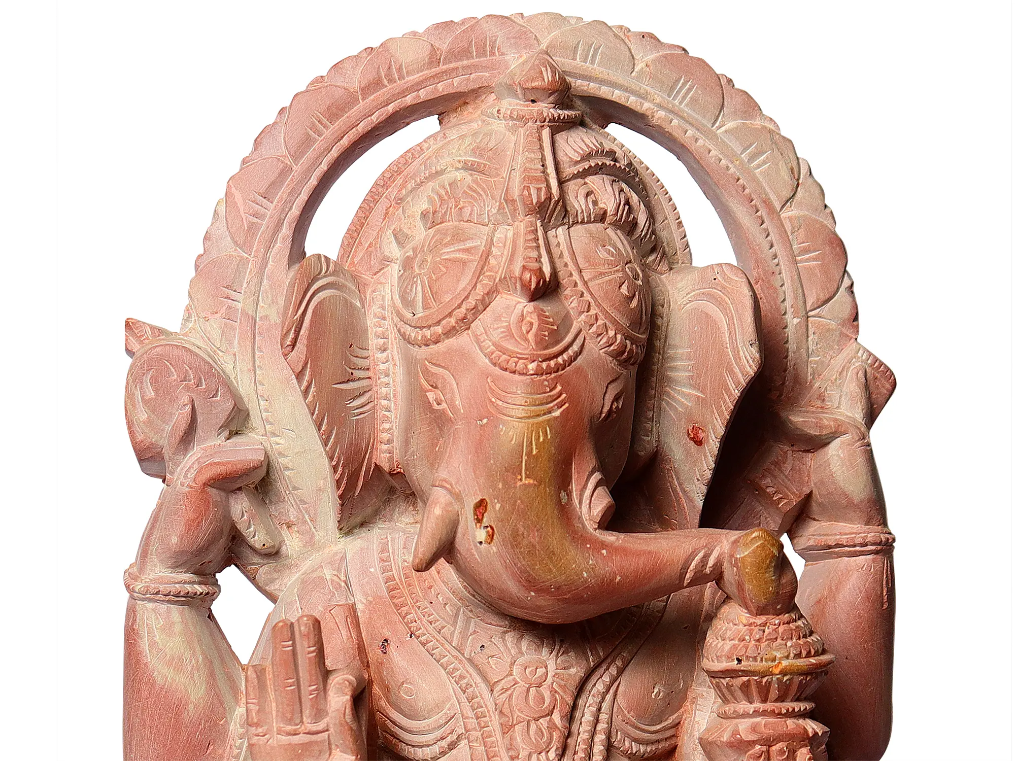 8" Lord Ganpati Idol Carved in Premium Pink Stone