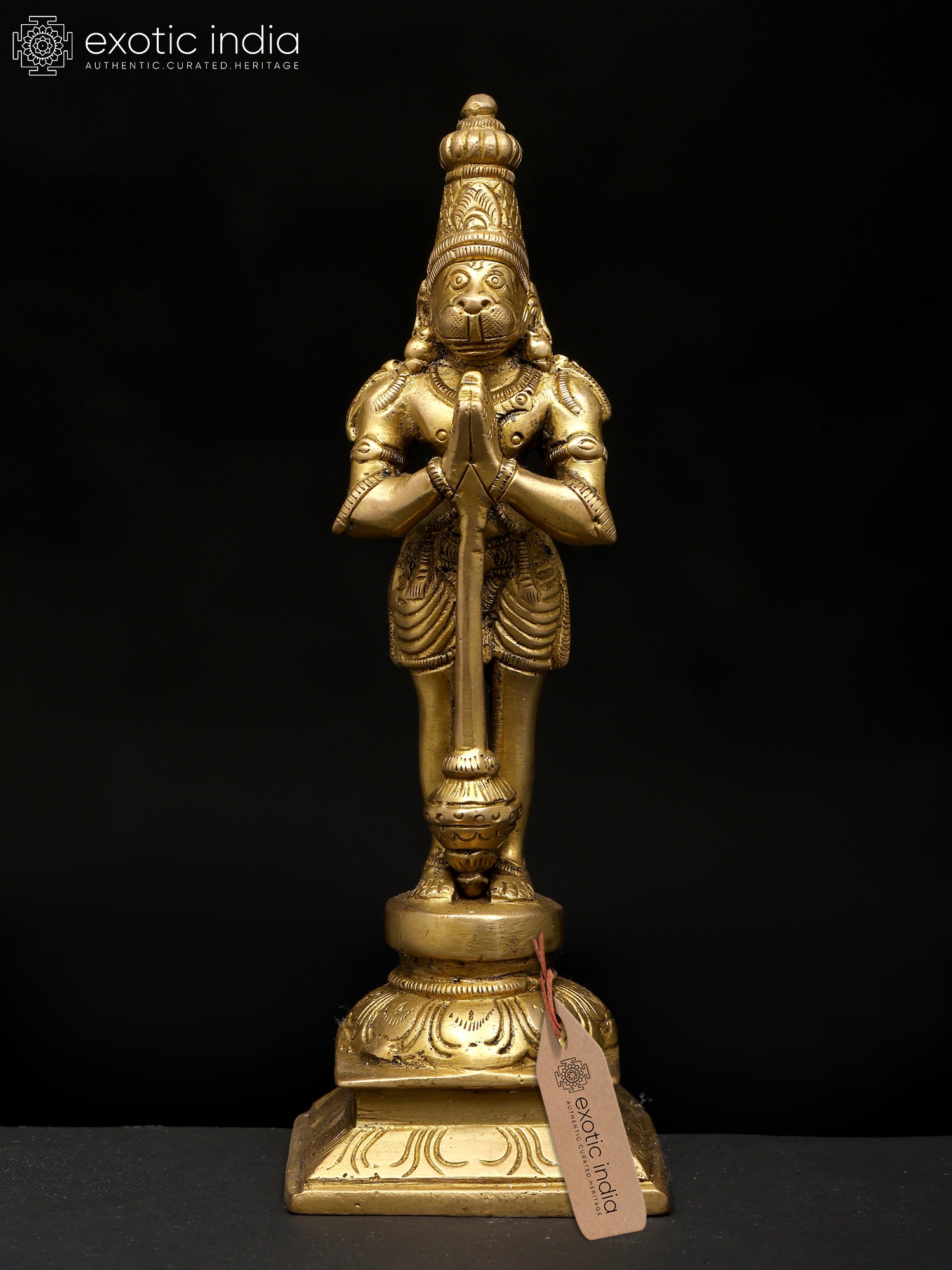 12" Superfine Standing Bajarangabali Hanuman in Blessing Gesture | Brass Statue
