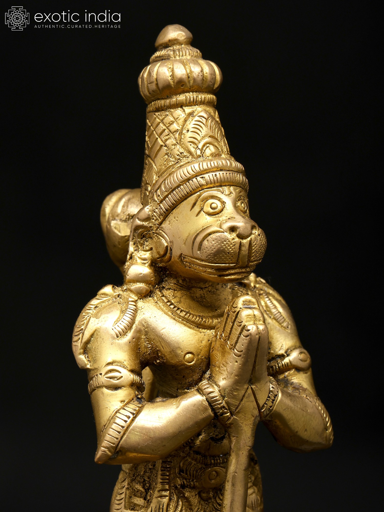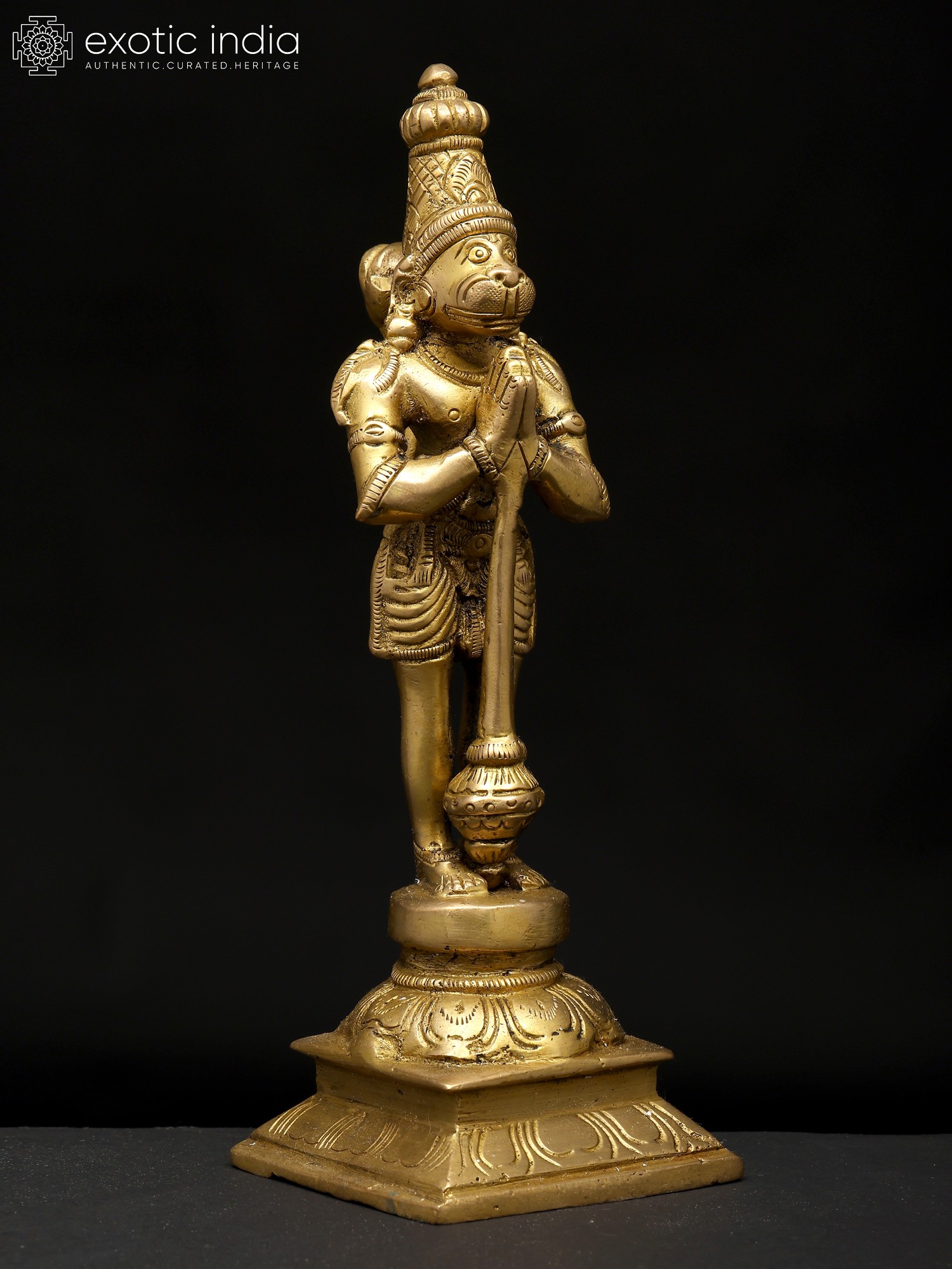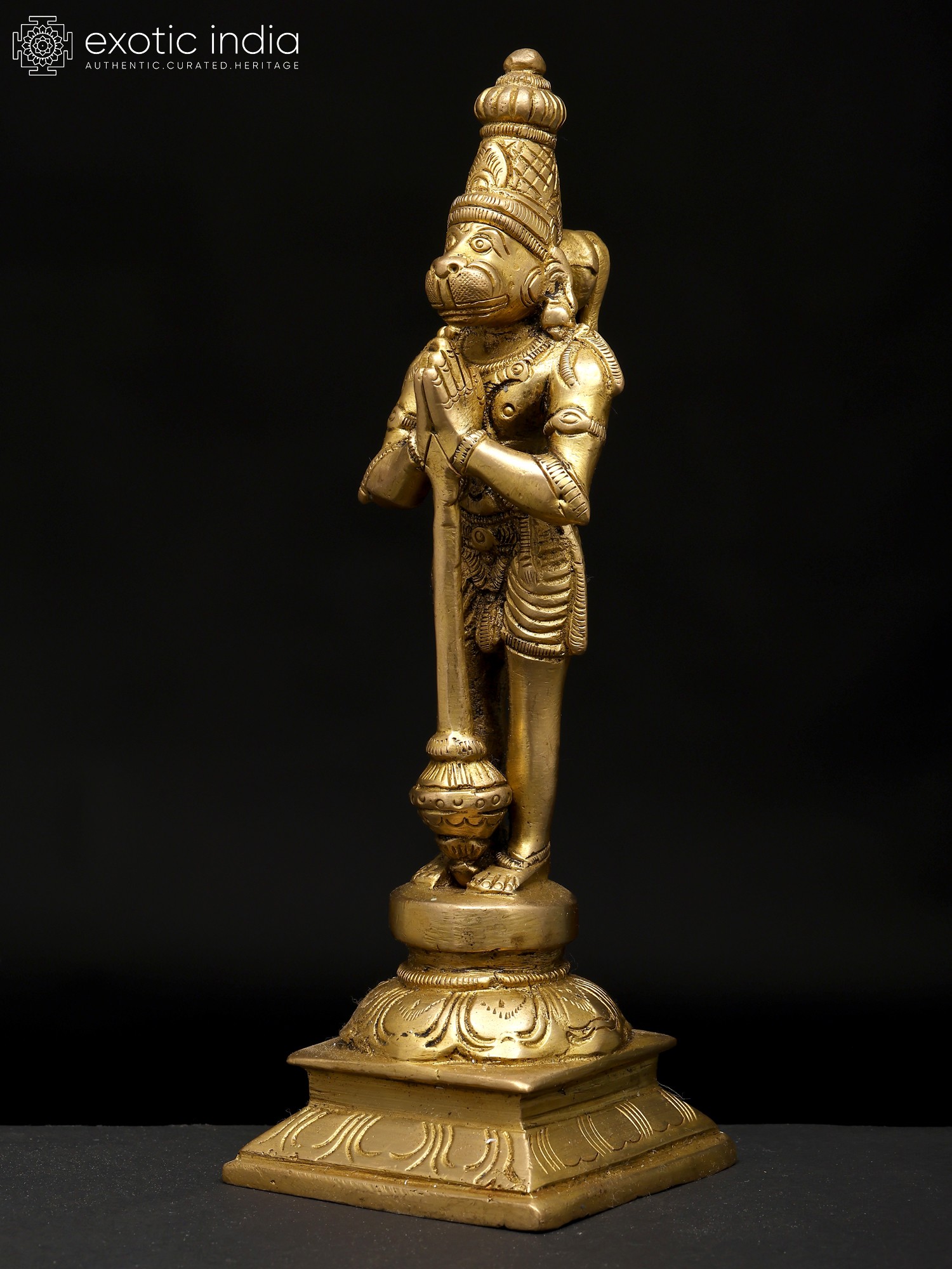 7" Brass Standing Panchamukhi Hanuman Sculpture | Handmade