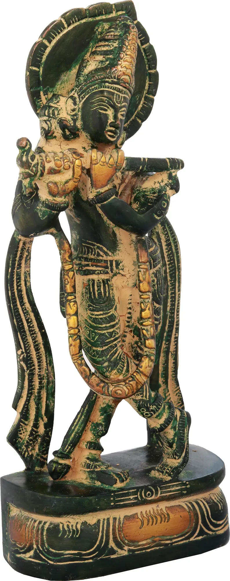 Lord Krishna, the eighth avatar of Vishnu, is celebrated throughout Hindu tradition as the embodiment of divine love, joy, and wisdom. His association with the flute is particularly significant. It is said that when Krishna played his flute, all of creation would stop to listen, mesmerized by its divine sound. Animals, trees, and even the rivers would pause in their flow to absorb the celestial melody. His music had the power to awaken the deepest emotions, inspiring devotion, peace, and bliss. This statue, therefore, is more than just a decorative object; it is a conduit to the divine energy of Krishna. It represents the transformative power of music and devotion, reminding us to find joy and harmony in our lives. In Hindu culture, images of Krishna playing the flute are often placed in homes and temples to invoke auspiciousness, protect from negativity, and foster an atmosphere of peace and spiritual growth. ––––––––––––––––––