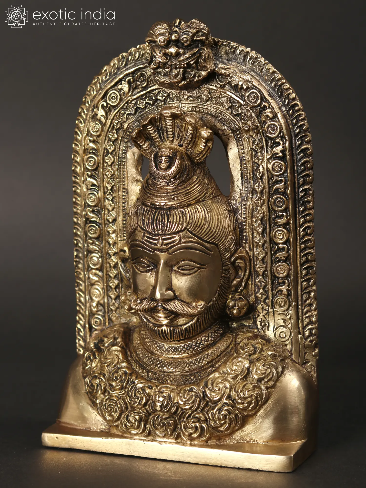 The statue depicts the half bust of Lord Shiva placed under a Kirtimukha prabhavali that symbolizes glory. This statue is a unique manifestation and this kind of manifestation has not been attempted before. This is a masterpiece of brass sculpting that evokes devotional feelings for Lord Shiva among his devotees.