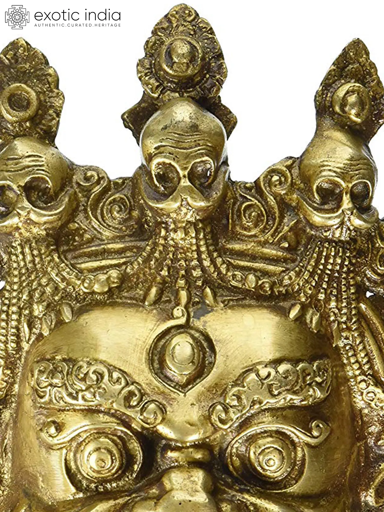 8" Mahakala Wall Hanging Mask In Brass | Handmade | Made In India
