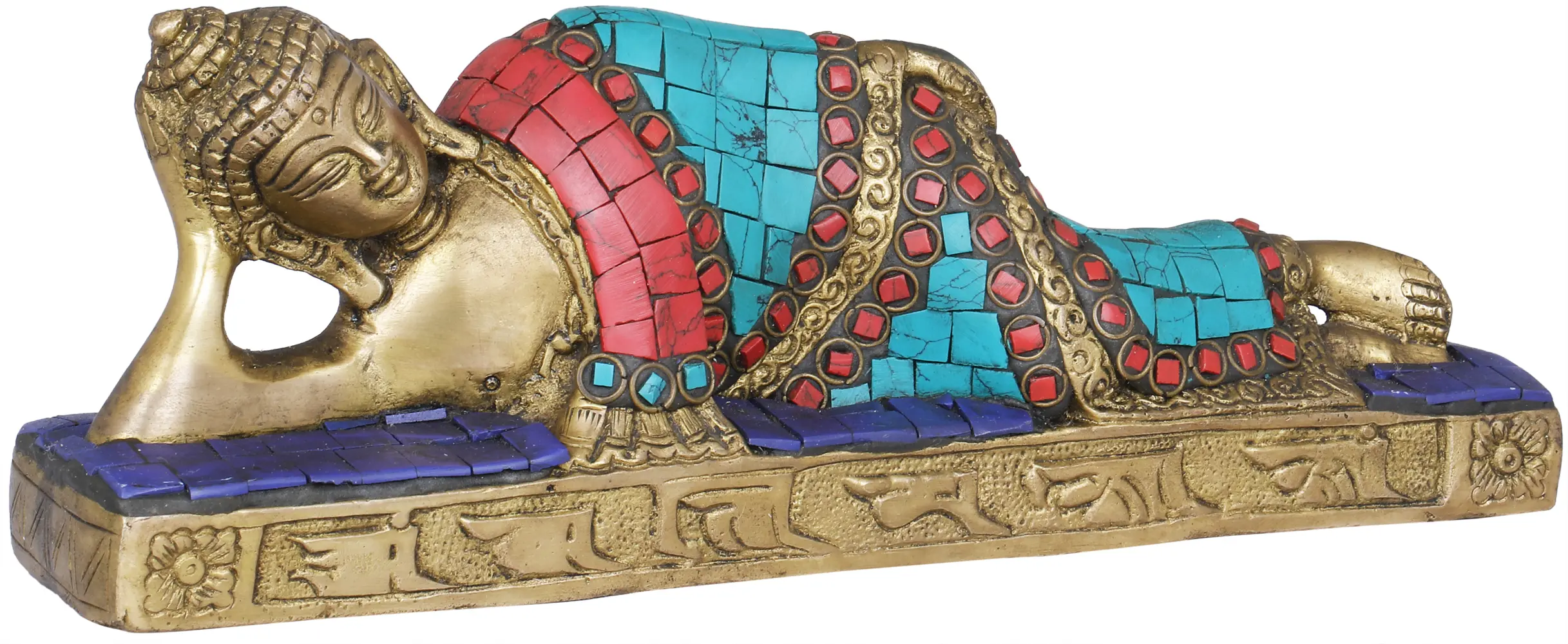48" Large Relaxing Lord Buddha Brass Statue | Buddhist Decor