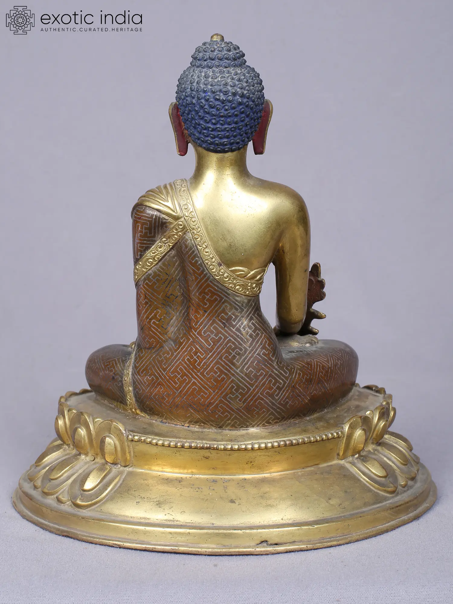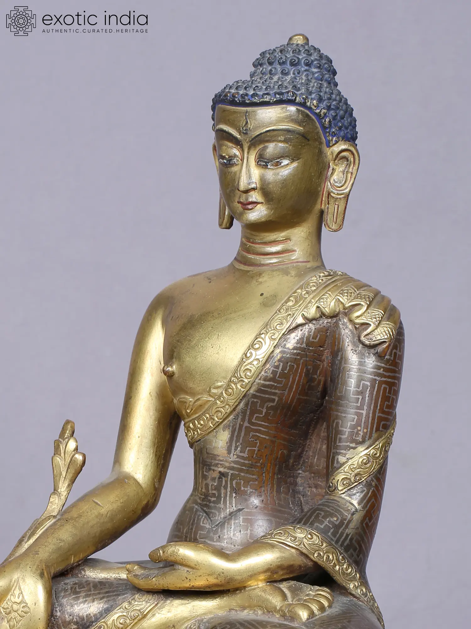 “Medeor”- the root of the words meditation and medication is the same. Healing thus is an integral step in one’s spiritual journey, so much so that in Buddhism an aspect of the Buddha is revered for his healing energies, that remove all illnesses from the devotee, making them “fit” to walk the path to Enlightenment. This form of Buddha is simply called Medicine Buddha or Bhaishajyaguru, presented in this mesmerizing Nepalese copper statute.