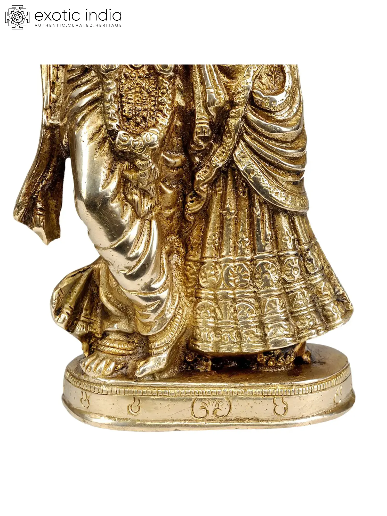 Experience the Serene Bliss of our Handmade Brass Radha-Krishna Statue, Contented in Each Other's Company. This exquisitely crafted masterpiece captures the divine harmony and eternal love between Radha and Krishna. The monotone beauty of the brass sculpture enhances the tranquil atmosphere, reflecting the inner contentment of the divine couple. Handmade with meticulous attention to detail, the statue emanates a peaceful and meditative aura, symbolizing the deep connection and joyous companionship of Radha and Krishna. Made in India, this brass creation adds a touch of spiritual tranquility to your sacred space, celebrating the divine bond between the eternal lovers.