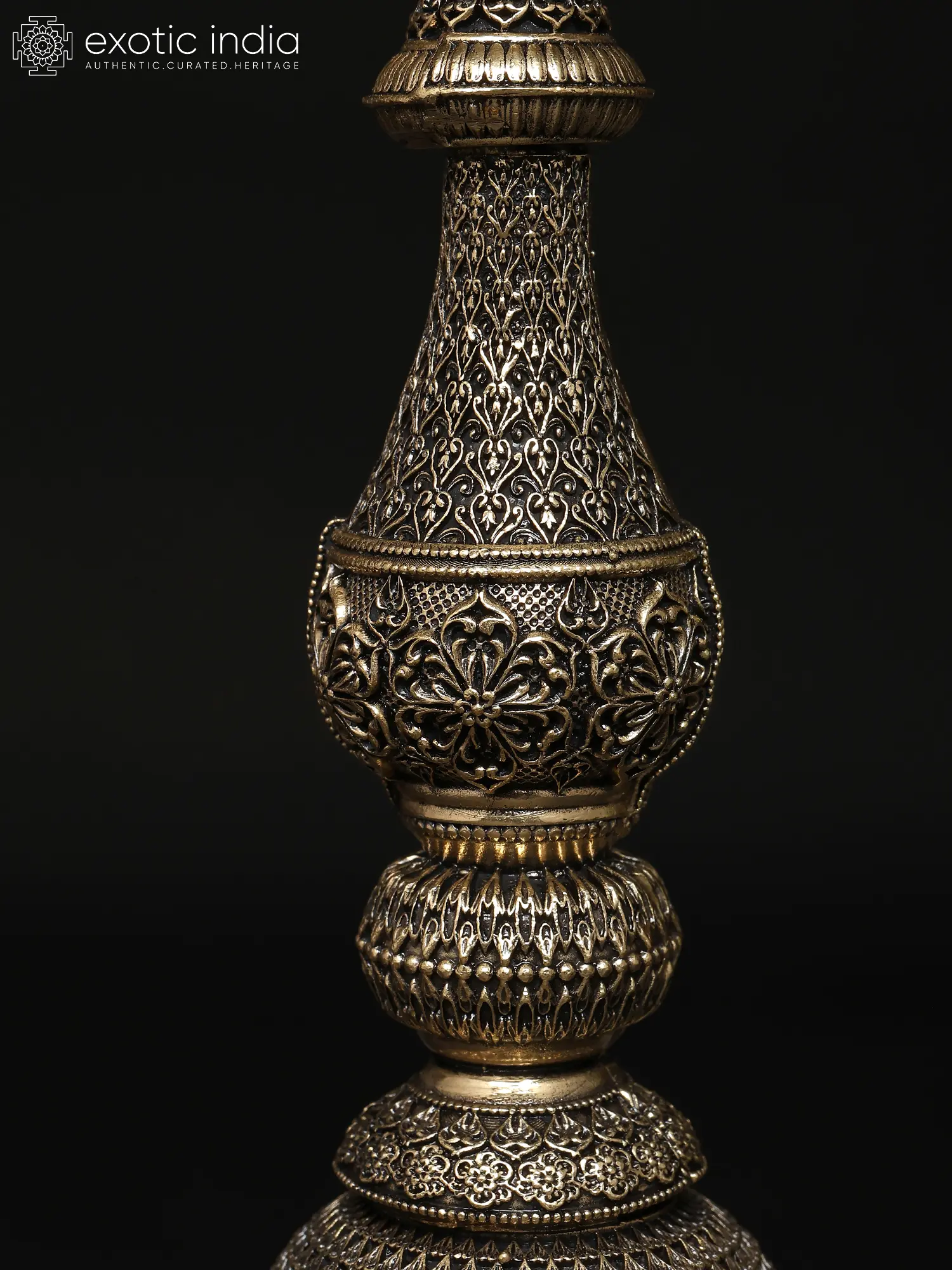22" Bronze Shiva and Parvati Idol Seated On Throne In The Divine Residence of Kailasa