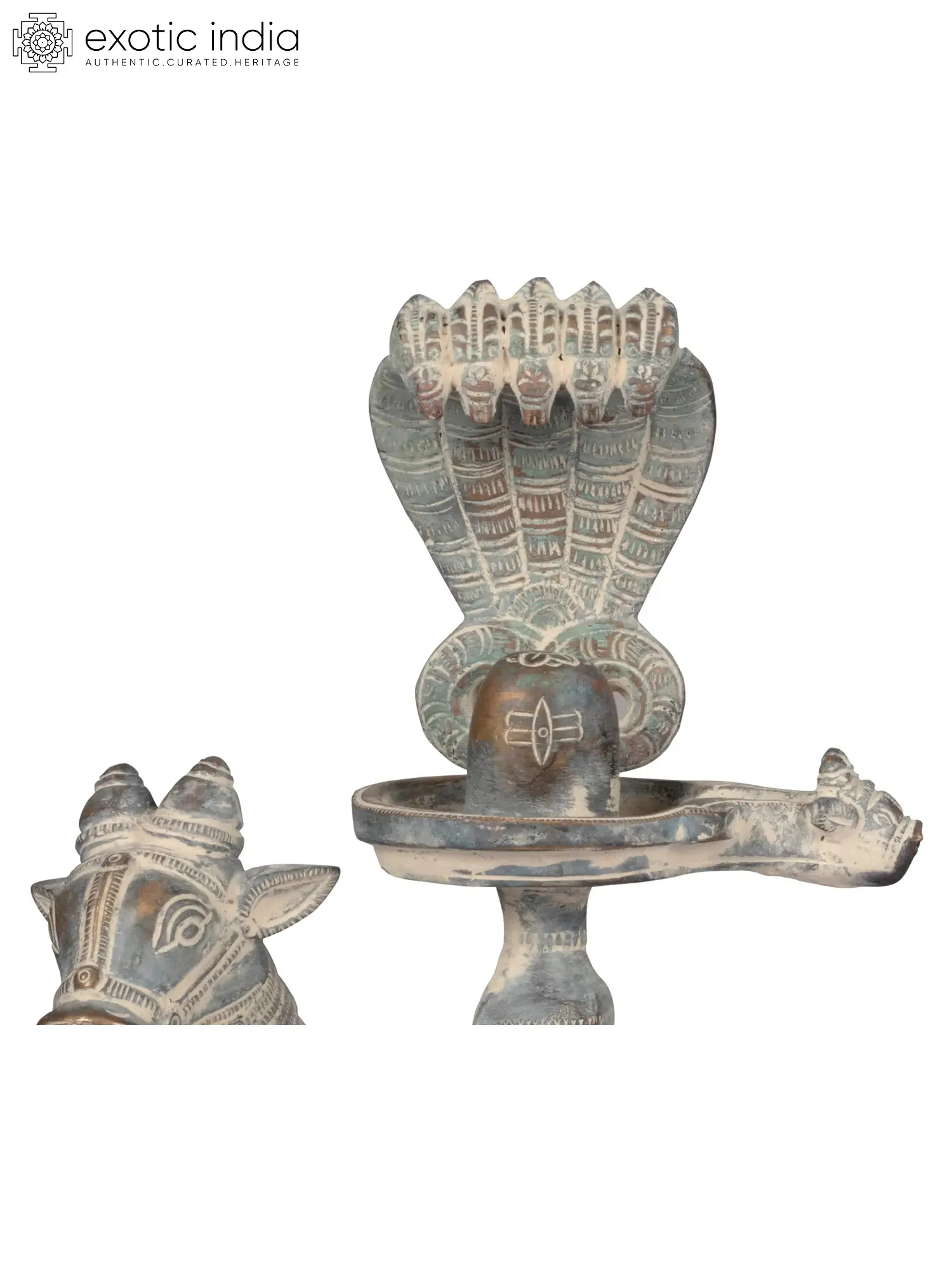 This Nandi for Abhisheka with Shiva Linga in Brass is a sacred piece, a representation of devotion and reverence. Handcrafted in India, it embodies the guardian spirit of Lord Shiva. As you perform Abhisheka rituals with this exquisite piece, may it help you connect with the divine and experience the grace and blessings of the Almighty. Let it be a source of strength and spiritual guidance in your life.