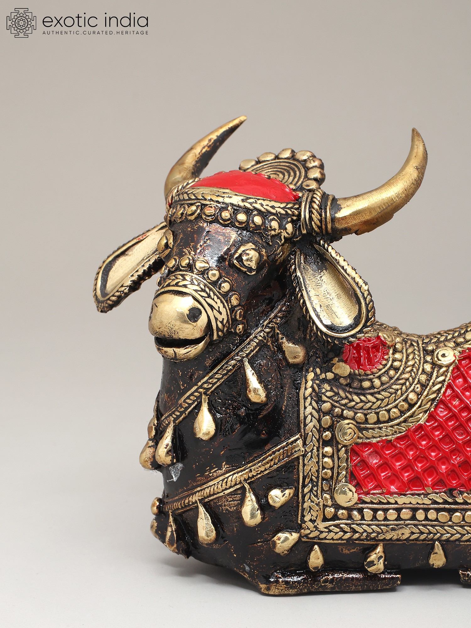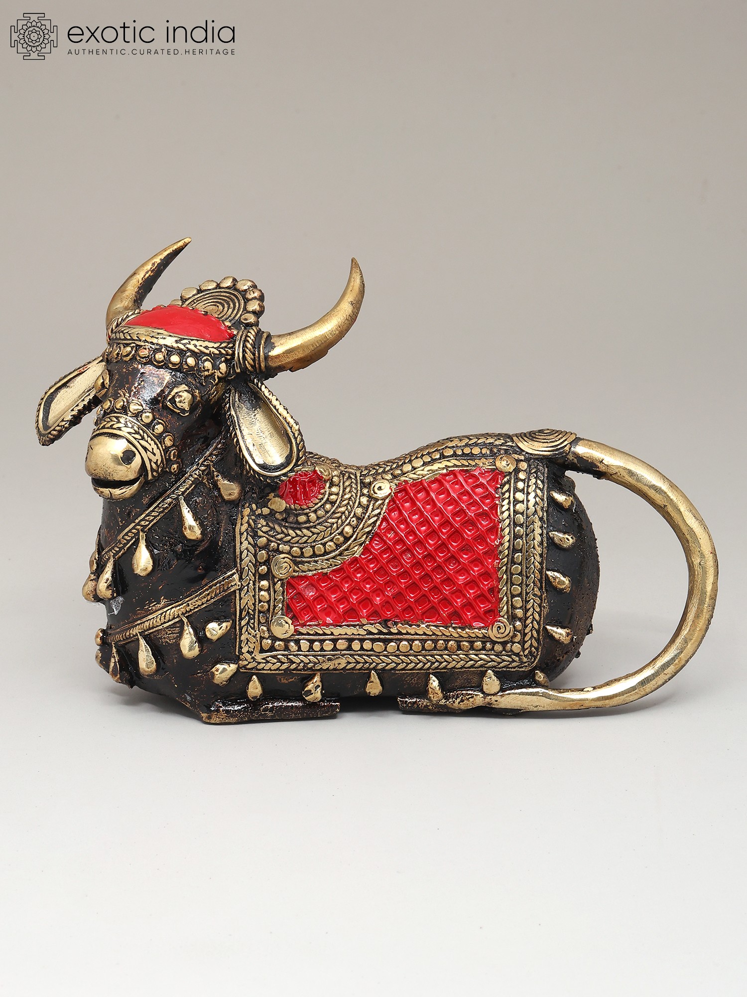 11" Brass Goddess Mahishasura Mardini (Tribal Dhokra Art)
