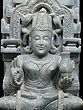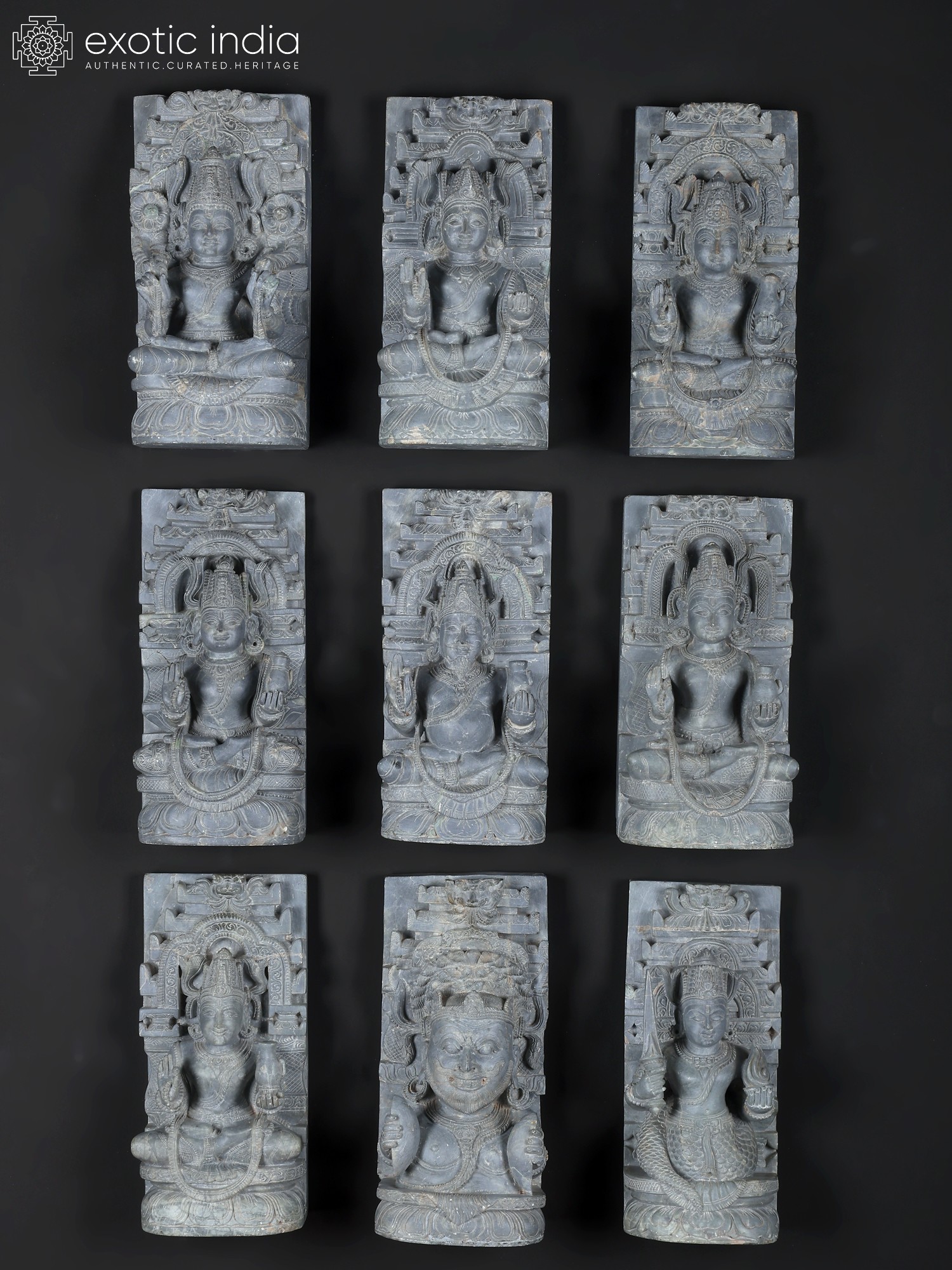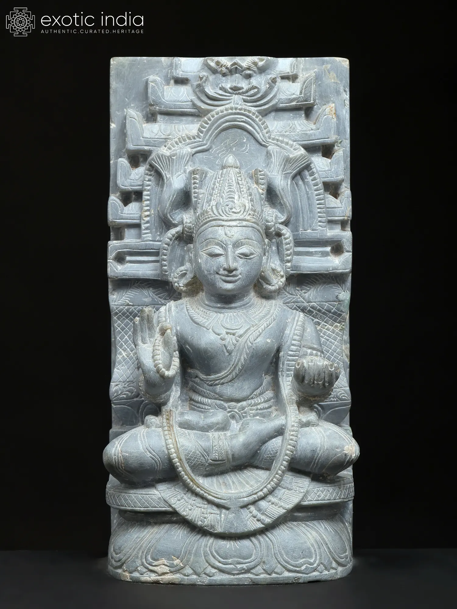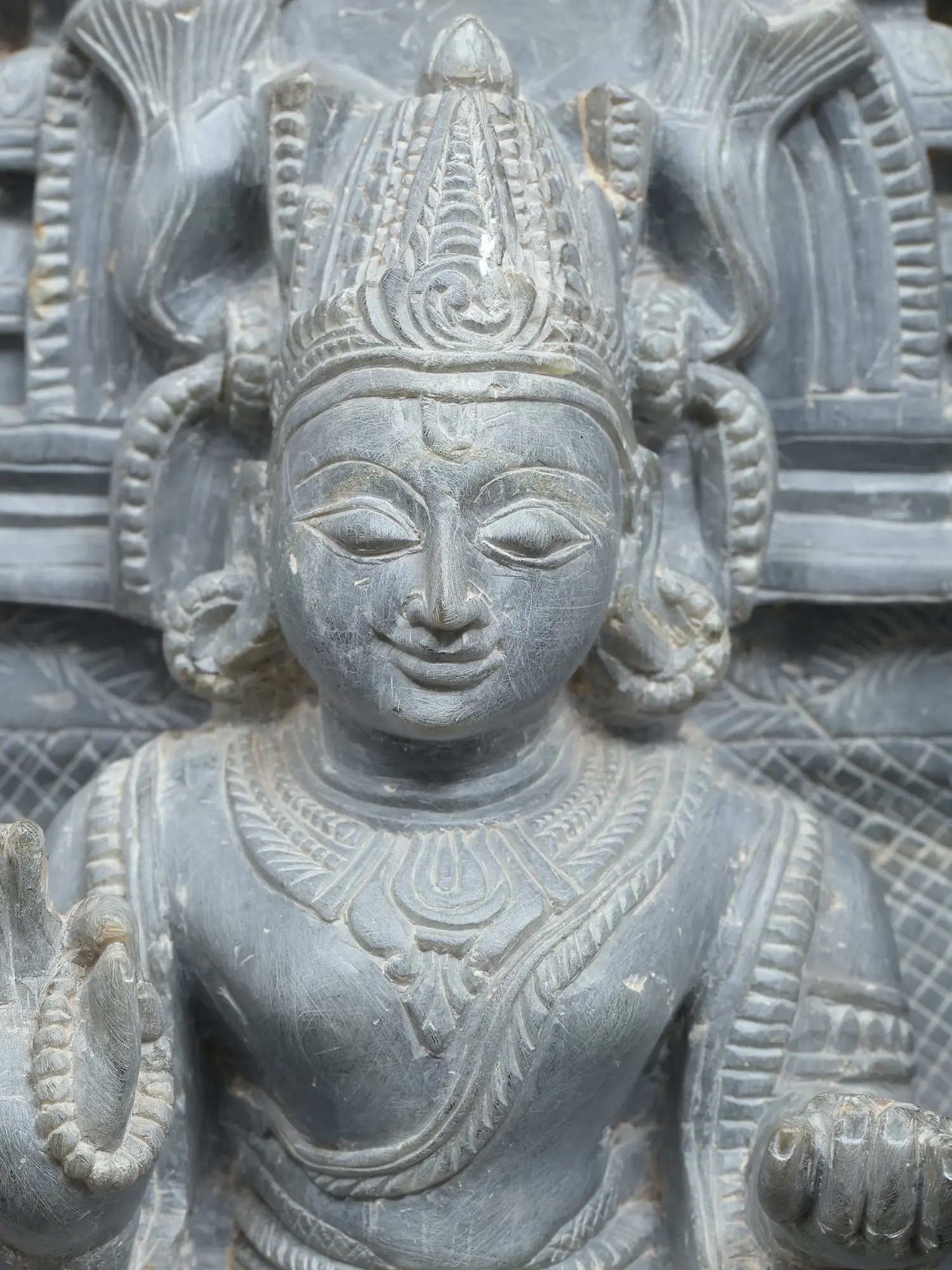 21" Chandra Graha Stone Idol - Moon Deity Sculpture in Black Granite