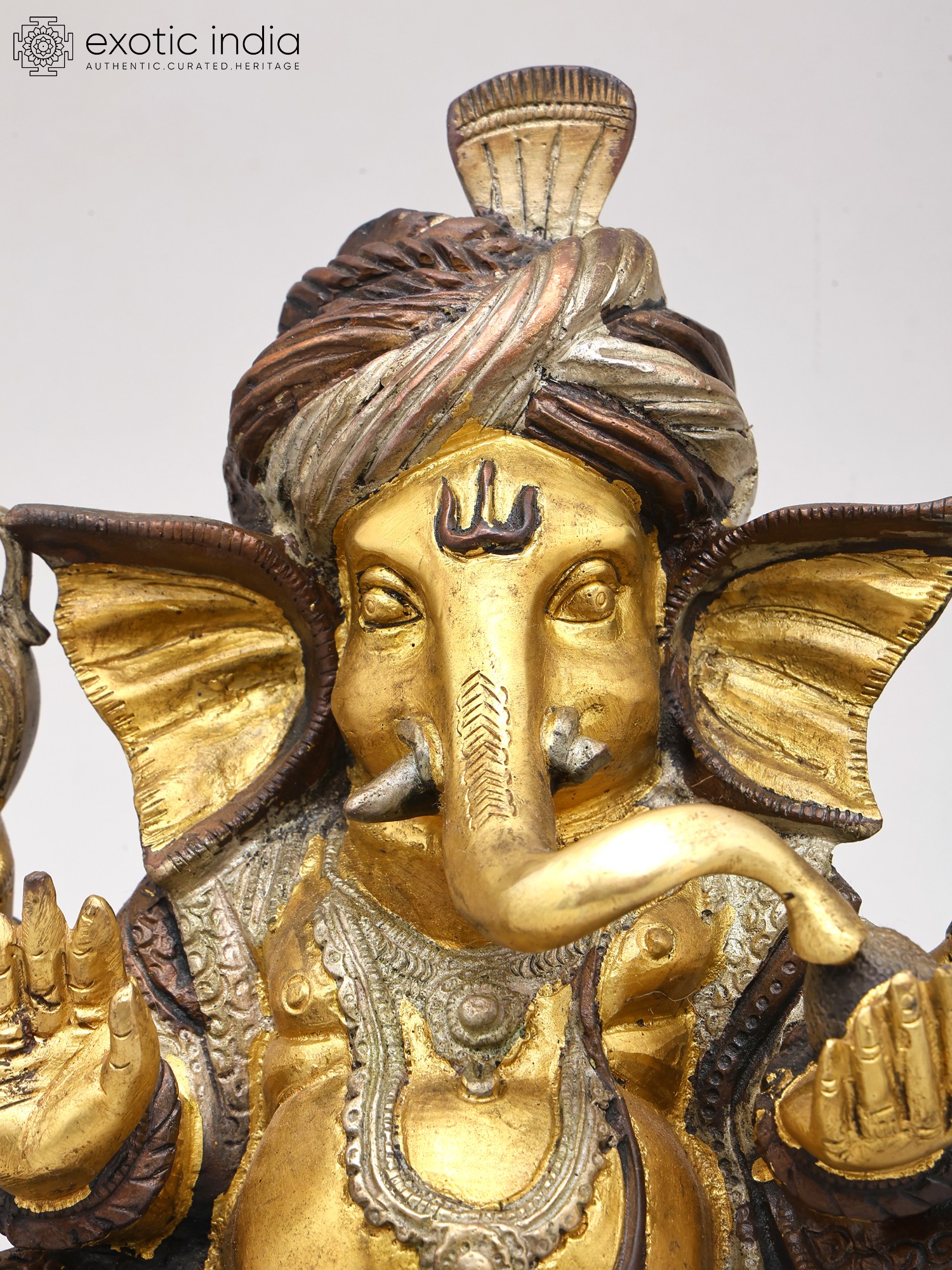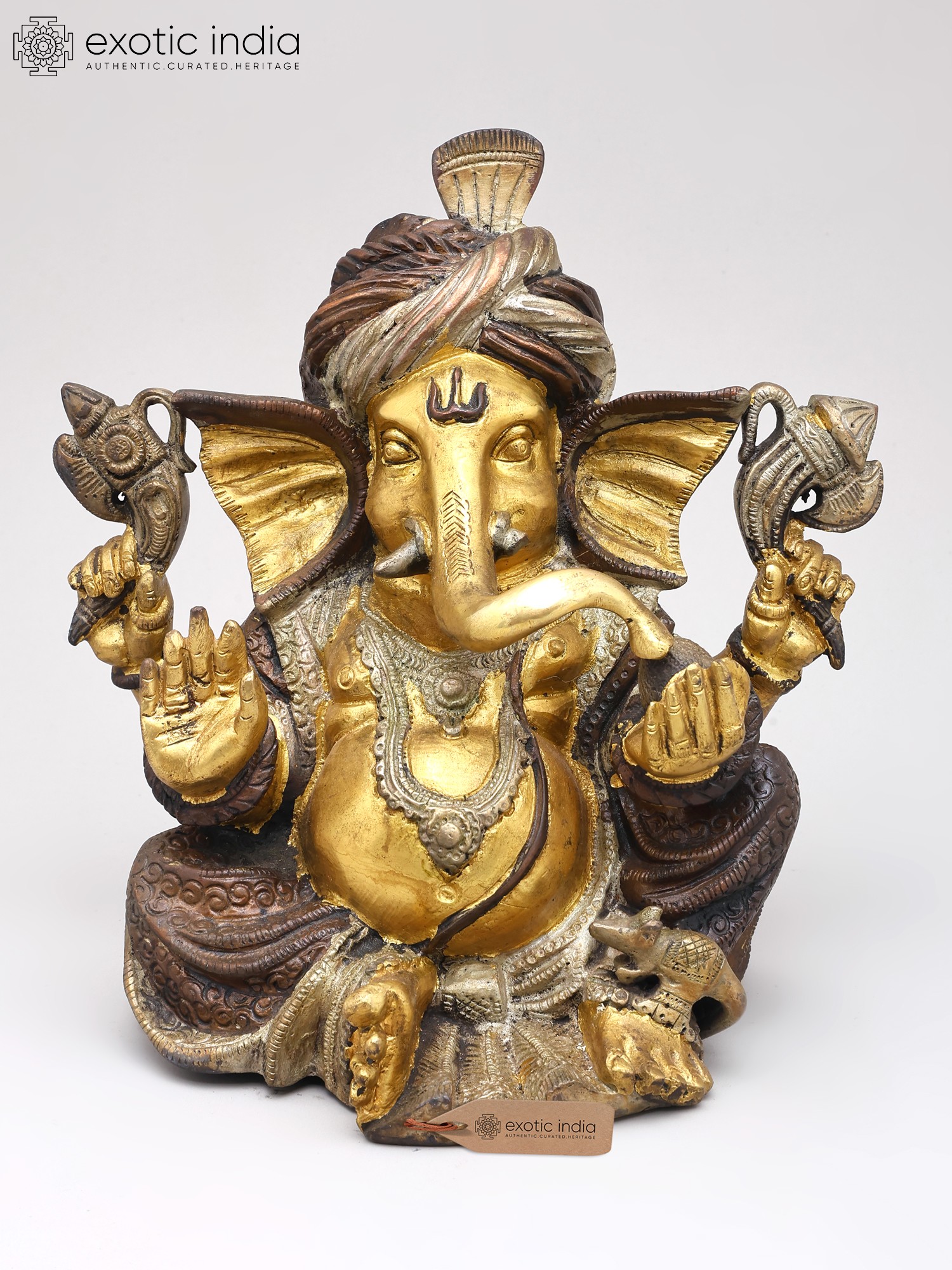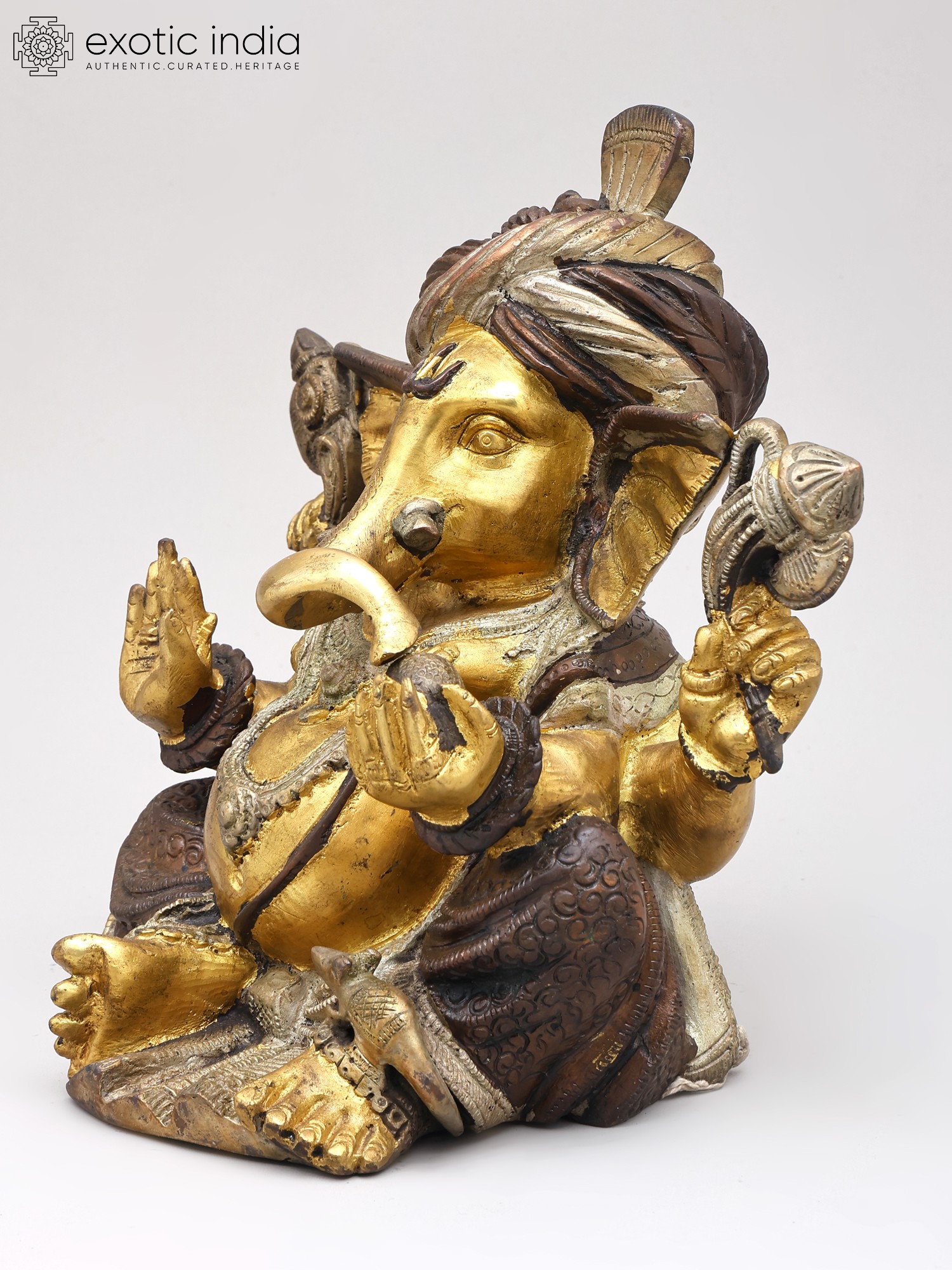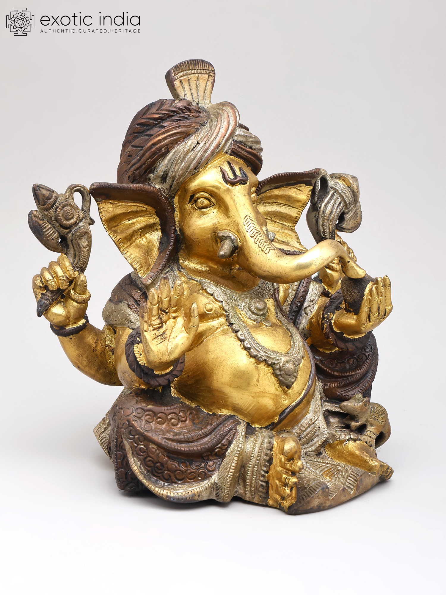 8" Pagdi Ganesha In Brass | Handmade | Made In India