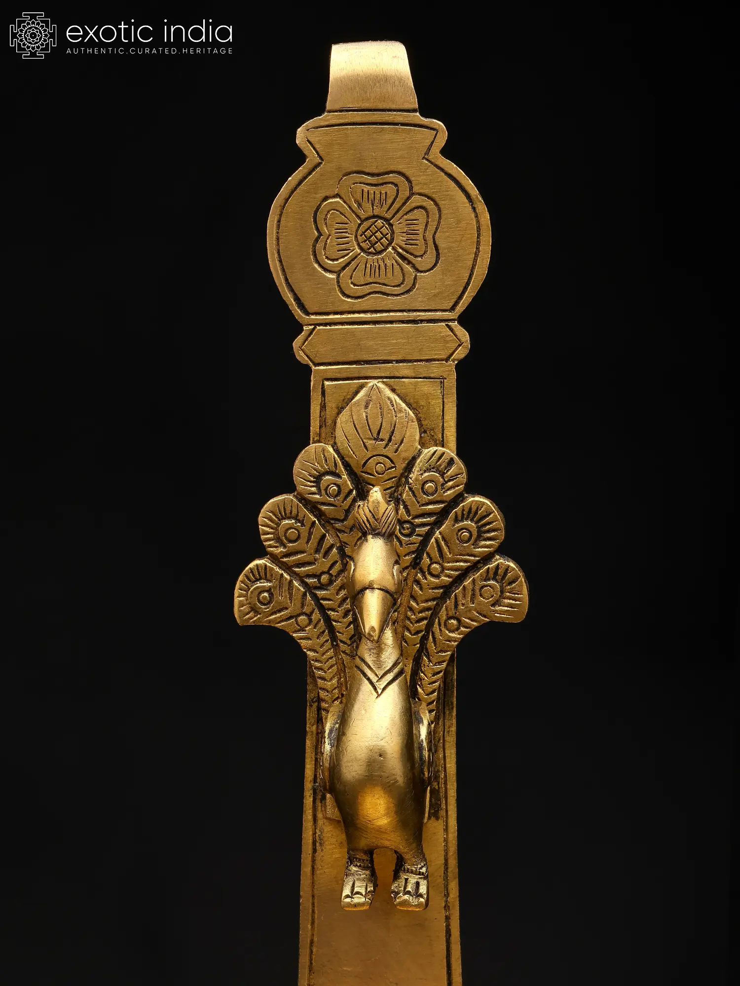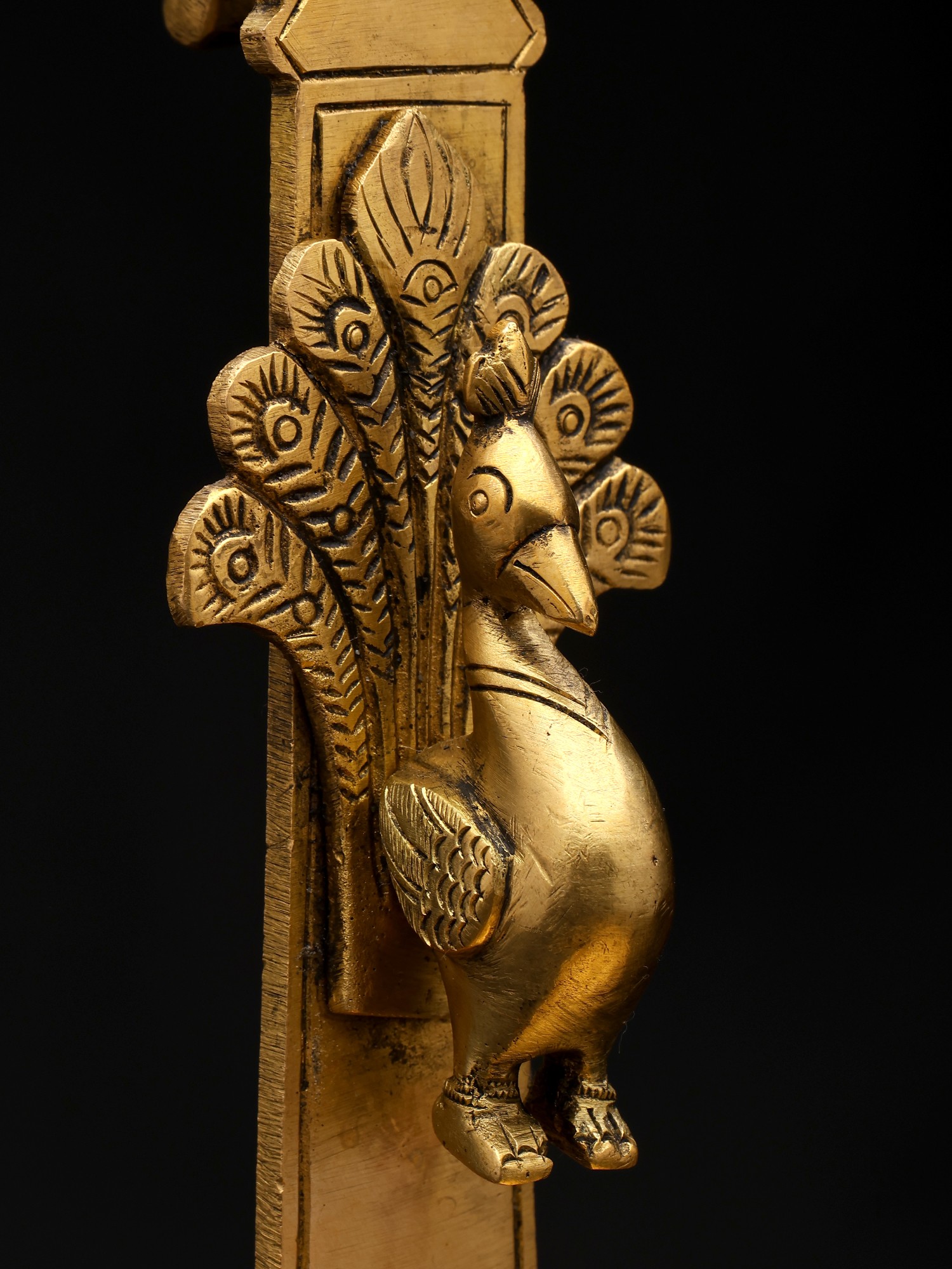 36" Mayur (Peacock) Lamp with Bells and Ghungroos in Brass | Handmade | Made in India