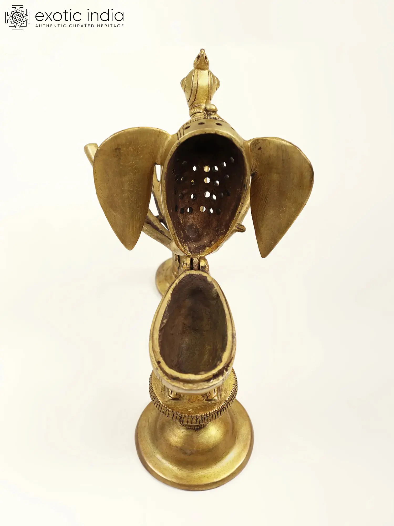 Ignite your spiritual rituals with this exquisite brass peacock incense burner, handcrafted with utmost care in India. The peacock, a symbol of grace and beauty, is often associated with the Goddess Saraswati, representing wisdom and knowledge. As you use this burner to offer fragrant incense, let the peacock's vibrant presence inspire you to seek wisdom and enlightenment. The act of burning incense has deep roots in Indian spiritual traditions, purifying the air and creating a serene atmosphere for your prayers and meditation. Incorporate this stunning piece into your daily puja and infuse your sacred space with the divine aroma of incense, invoking the blessings of the Goddess Saraswati and embracing the pursuit of wisdom.