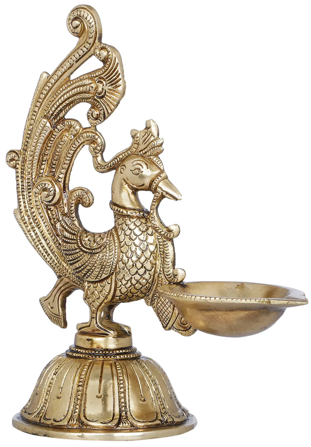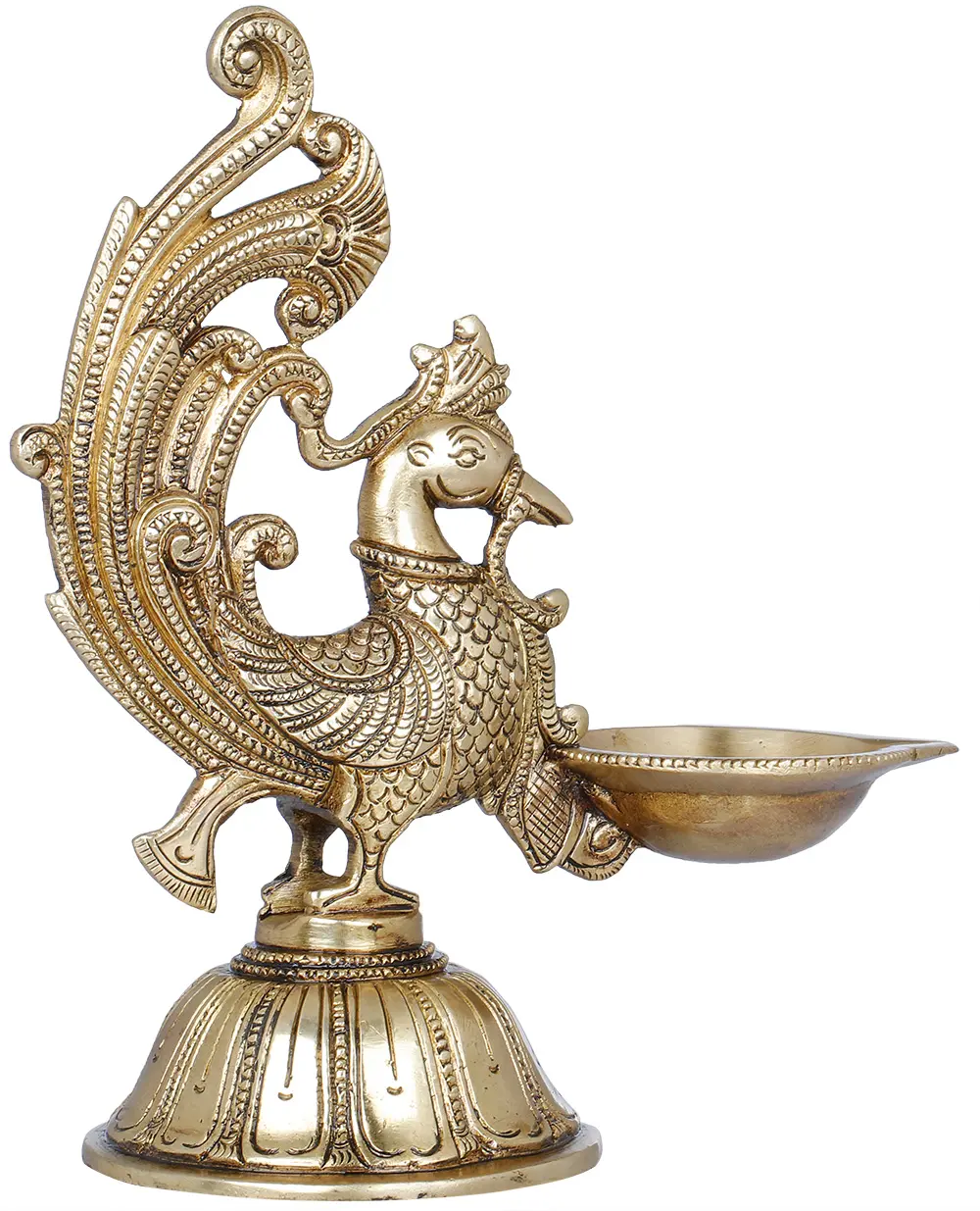 Handcrafted with intricate detailing in India, this exquisite Peacock Lamp is a statement of artistry and devotion - this lamp carries the symbolism of grace and protection associated with the peacock. As you light the lamp, watch the dancing flames cast enchanting shadows, creating an atmosphere of serenity and spirituality. It is more than just a source of light; it's a beacon of faith, guiding your prayers and aspirations towards the heavens. Let the peacock's elegance and symbolism fill your space with divine energy.
