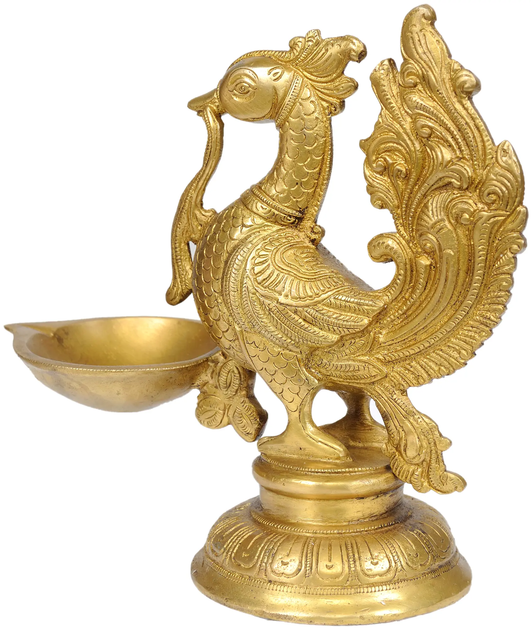 Noble birds like the peacock, swans, and parrots are frequently found in this design. They are stylized, and as ornamental motifs, they use natural models uniquely. This brass lamp in the traditional shape with a peacock motif as the central image is a tribute to the grand vision of peacocks. The peacock, often associated with grandeur, is seen biting a branch, which further signifies its ability to provide growth. This lamp in fine brass shine showcases the excellent craftsmanship of iIndianlamp artists and allows the buyer to own a piece of art that holds utility.