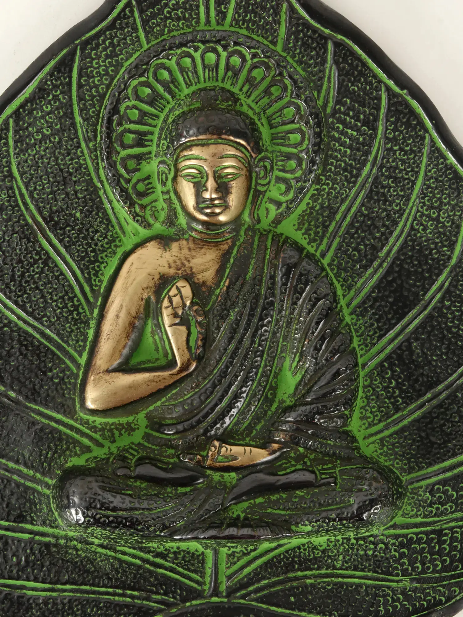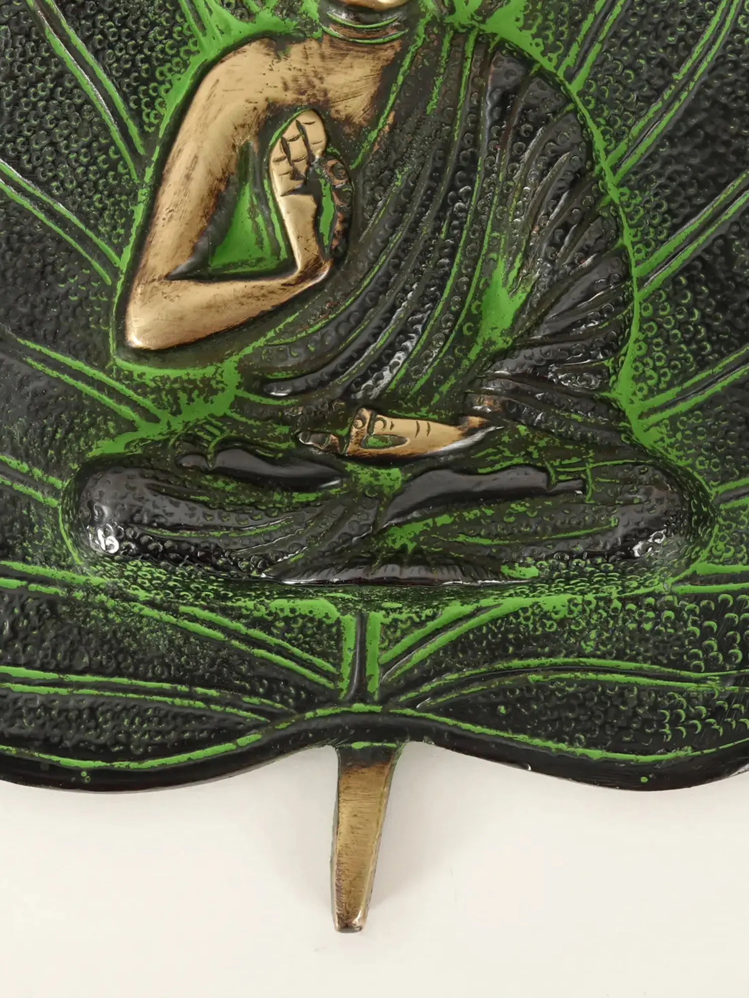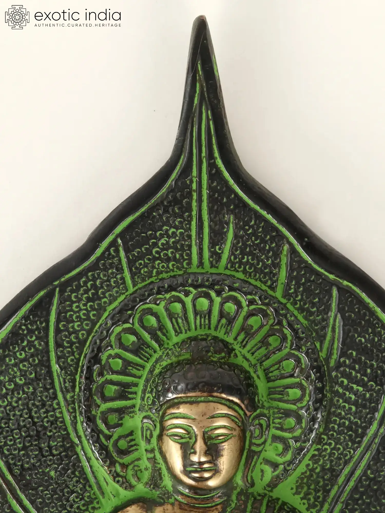 8" Pipal Leaf Buddha Wall Hanging - Tibetan Buddhist In Brass | Handmade | Made In India