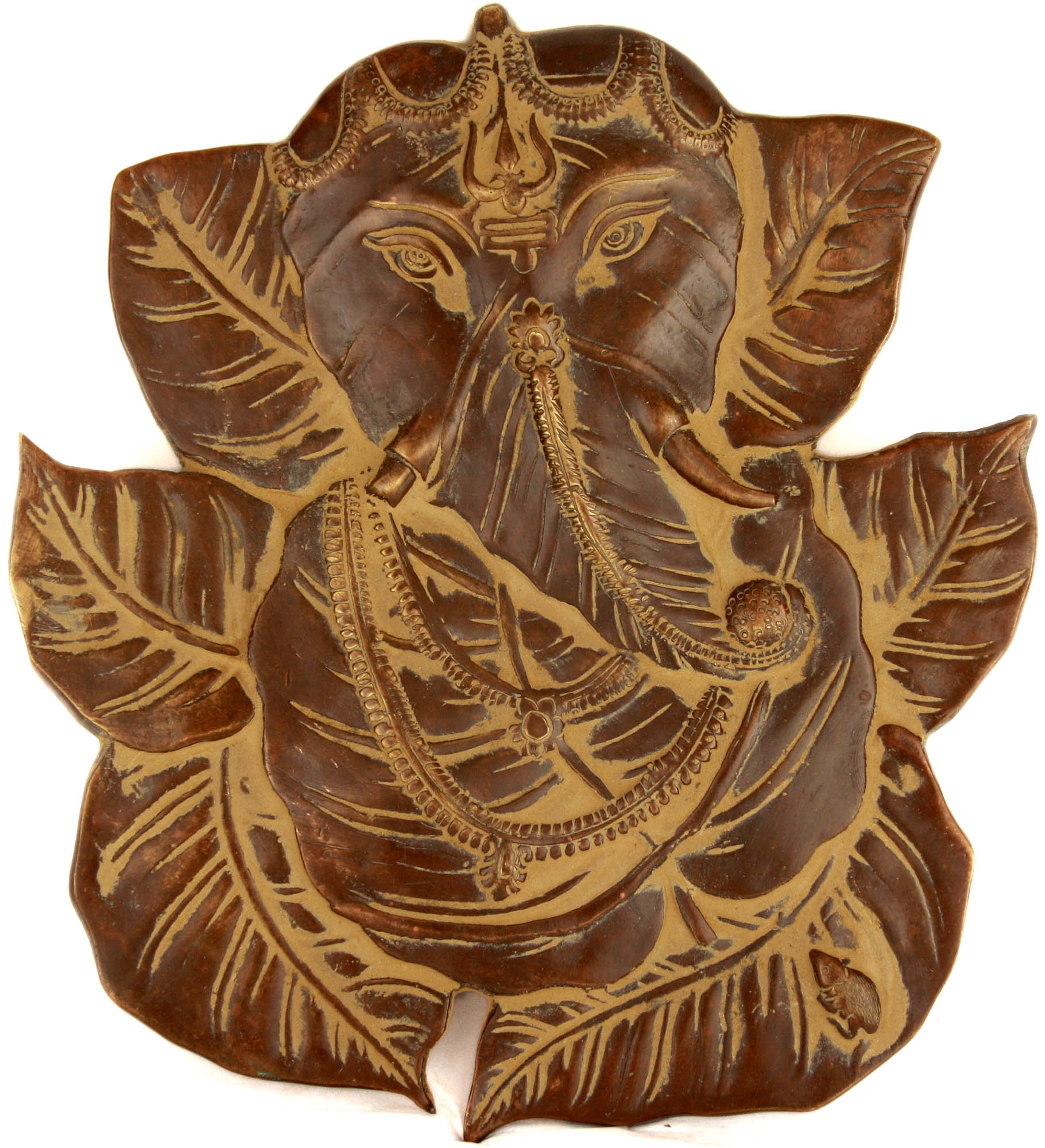 The Pipal Leaf Ganesha with a Trishul on the forehead is a mesmerizing brass wall hanging, meticulously crafted to blend artistry with spirituality. The body of Lord Ganesha is ingeniously depicted using intricately designed leaf-shaped portions, symbolizing nature's harmony. His divine ears bear the symbols of "Aum" and the Swastika, signifying auspiciousness. In the center, Lord Ganesha's trunk lovingly holds a modak, his favorite sweet. This masterpiece not only serves as a stunning piece of decor but also holds deep cultural significance. Hanging this Ganesha wall art in your home brings blessings, prosperity, and positive energy. It acts as a spiritual reminder and a source of inspiration, fostering a harmonious ambiance and invoking the divine presence of Lord Ganesha into your life.