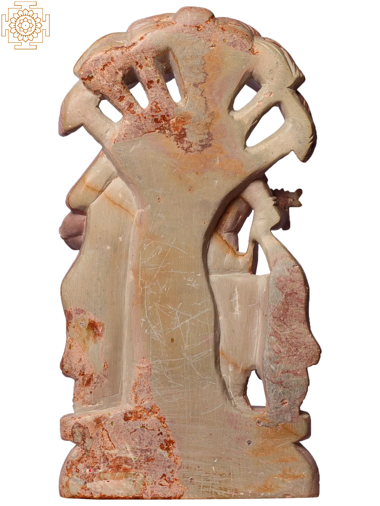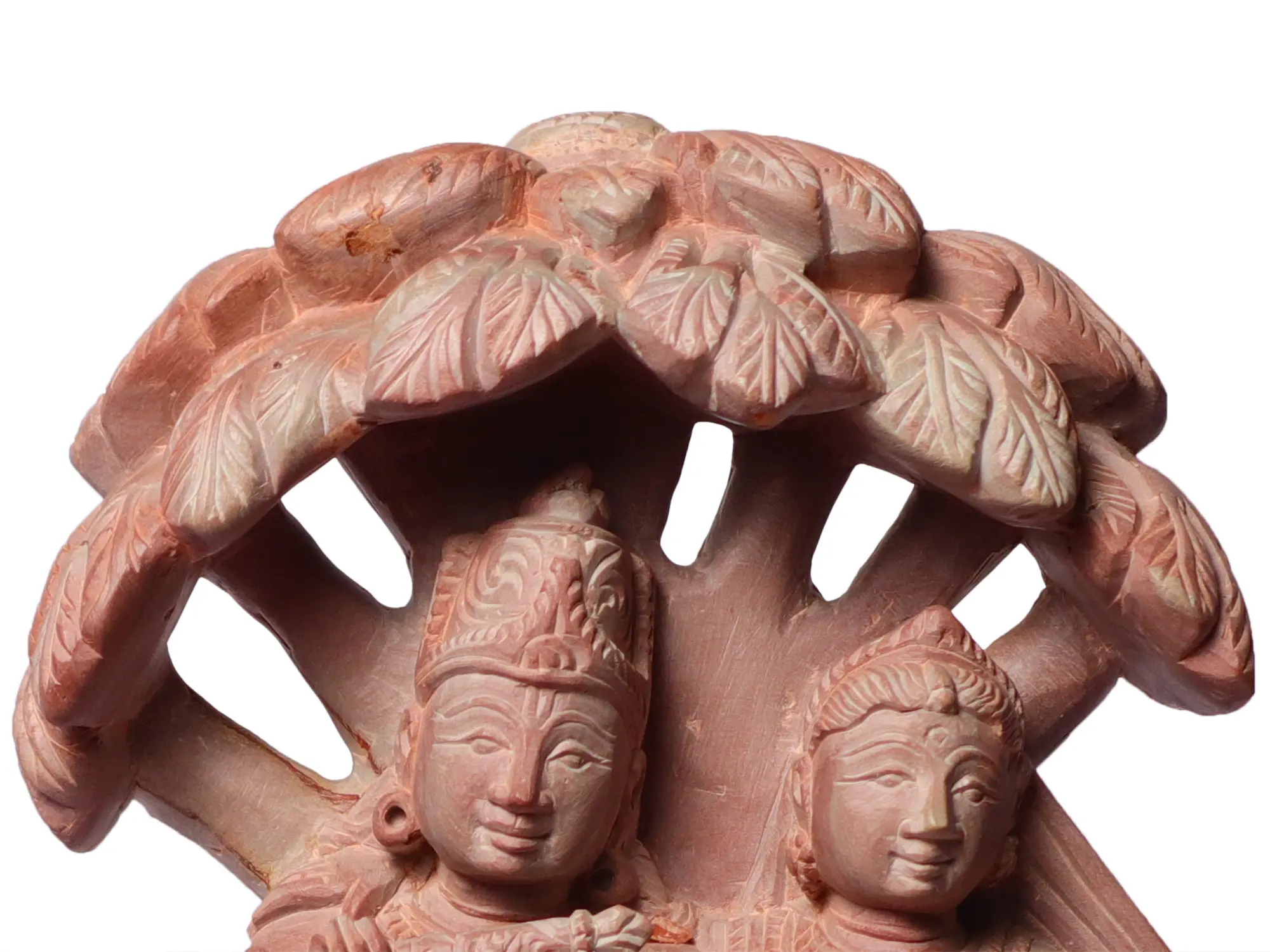 The Radha Krishna with Cow is a heartwarming pink stone statue that depicts the divine love shared between the divine couple and the sacred cow. Lord Krishna, often depicted as a cowherd, stands with Radha by his side, while a cow lovingly nuzzles them both. Their radiant smiles reflect the pure and unconditional love that unites all beings in the universe. This sculpture serves as a reminder of the interconnectedness of all life and the bond that exists between humans, animals, and nature. One can dwell easily in radiations of love and compassion, recognizing the inherent unity in all living beings.
