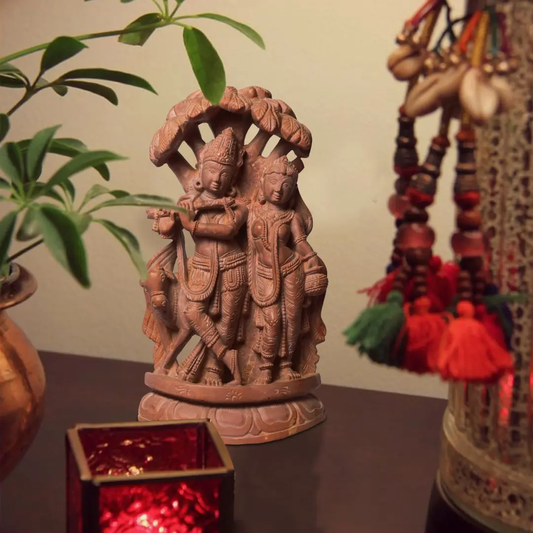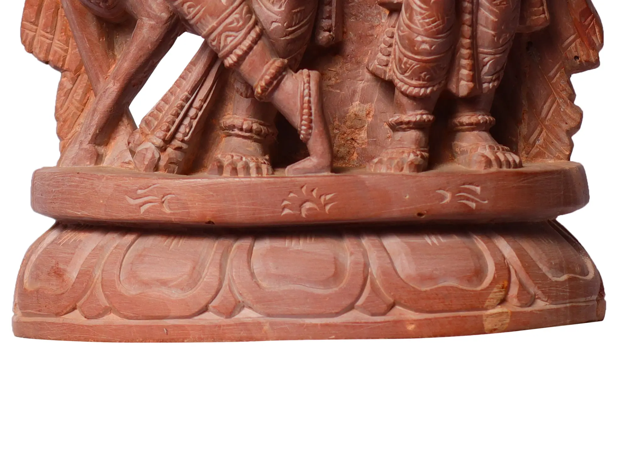A stunning pink stone monument called The Radha Krishna Standing depicts the enduring love between Radha and Krishna. The celestial flutist Lord Krishna is erect, his side is occupied by Radha, and their fingers are delicately intertwined. Their shared spiritual connection and strong kinship are visible in their eyes. This sculpture serves as a reminder that love is an emotion that knows no bounds, touching the deepest parts of our hearts. Cherish the divine love that permeates all connections and look for the sincerest type of intimacy that can add joy and purpose to our lives.