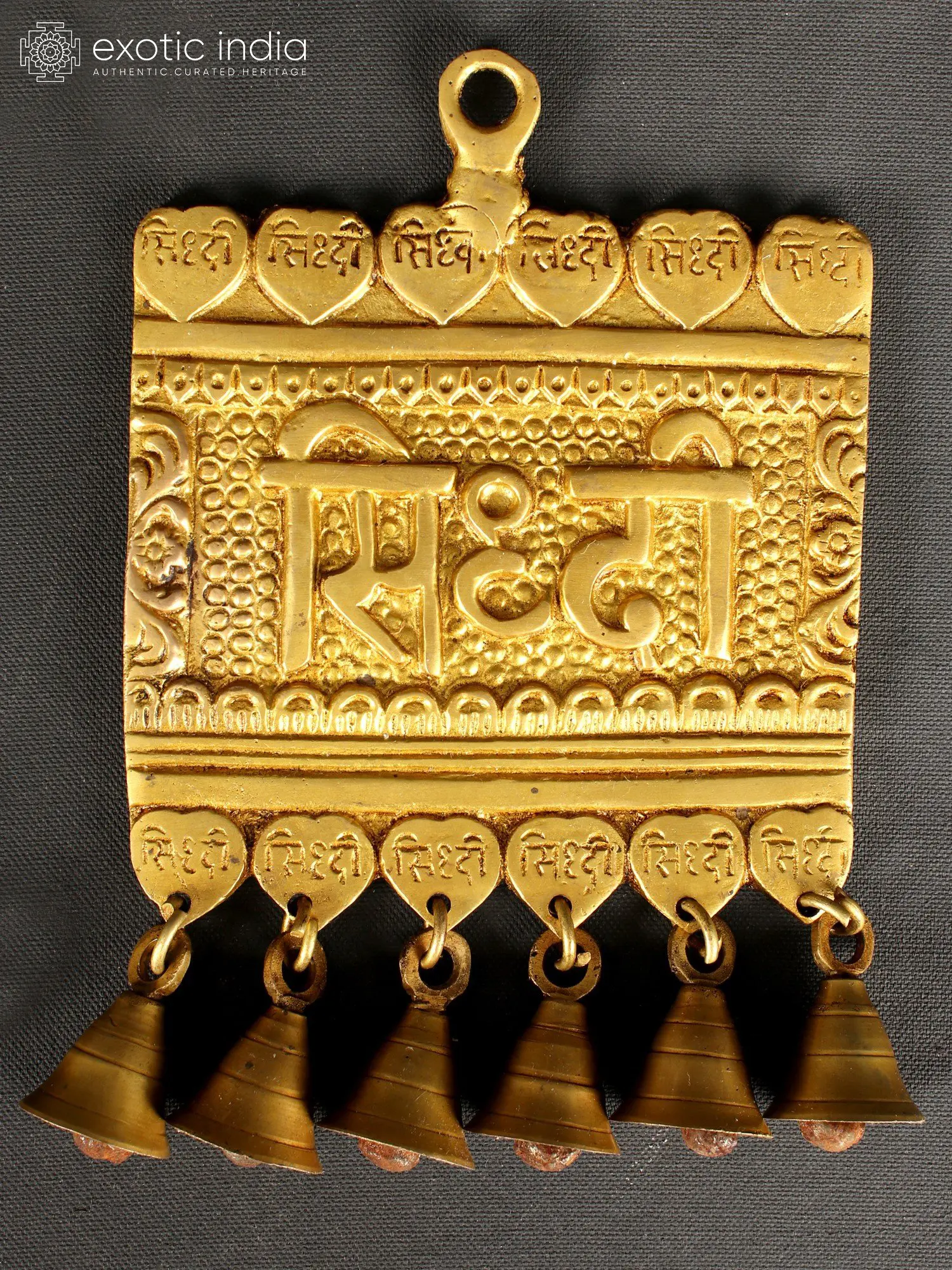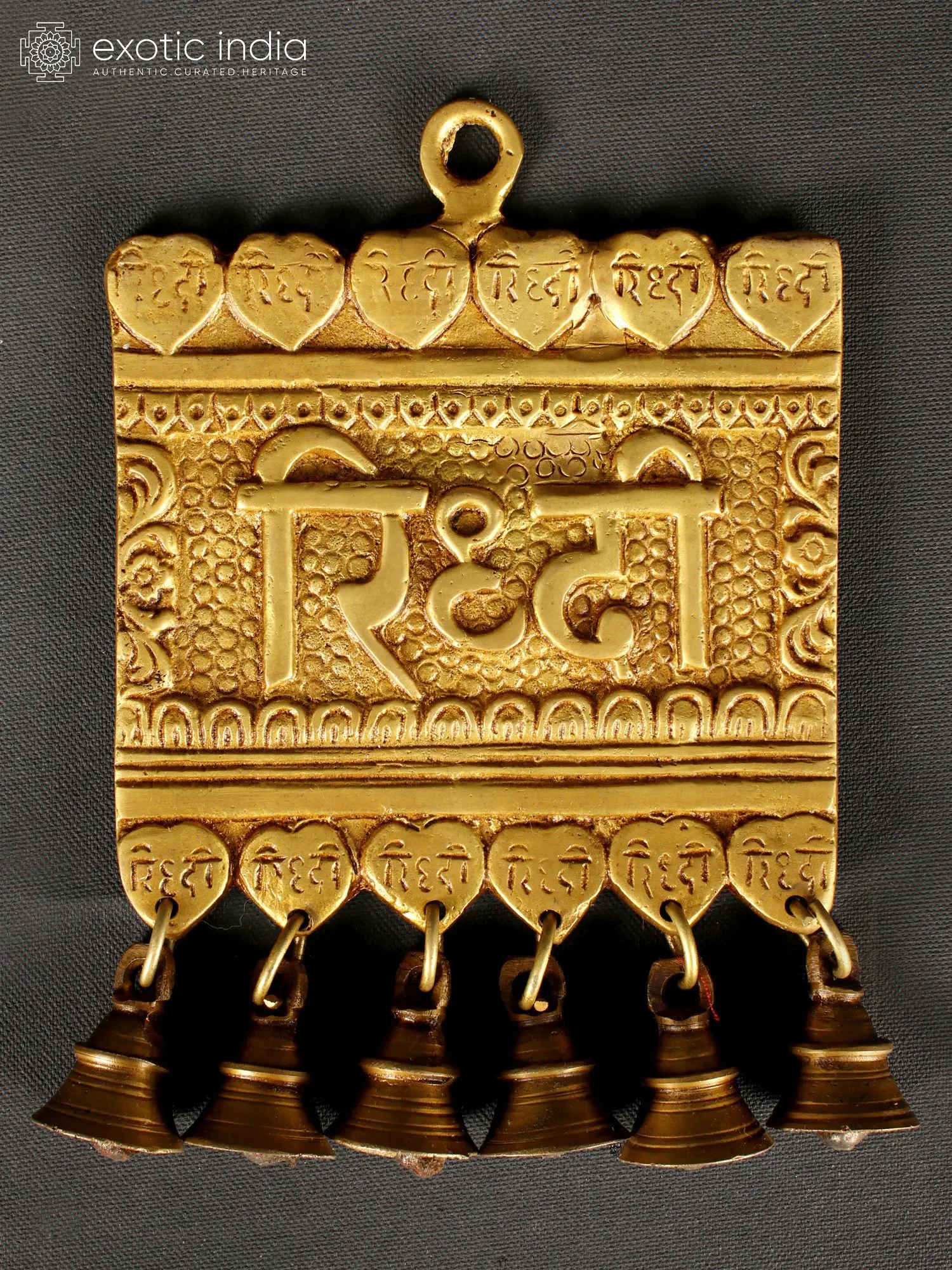 Lord Ganesha's consorts are the Goddesses Riddhi (wealth and prosperity) and Siddhi (intellectual and spiritual powers). Whoever pleases Ganesha is also blessed by Siddhi and Riddhi. This wall hanging brings together the Dharak, or bearers of Shubh (good) and Labh (gain). The brass wall hanging is fashioned in the shape of square panels with Riddhi and Siddhi inscribed on them. The square panels are adorned with bells. The brass bells that accompany it lend a melodious touch. This wall hanging is heavenly and attractive, giving blessings and beauty to any environment.