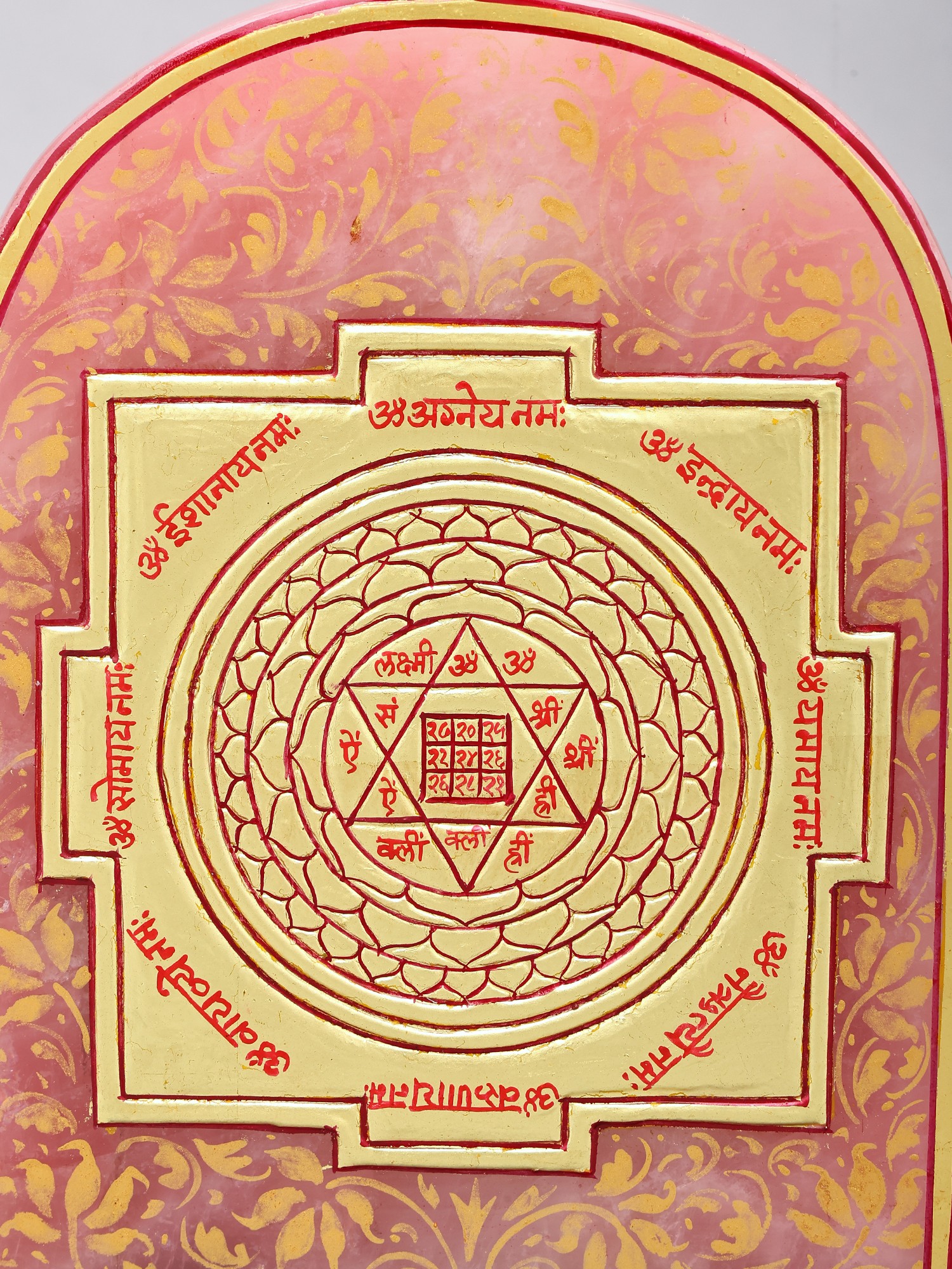 8" Lakshmi Yantra on Rose Quartz for Prosperity