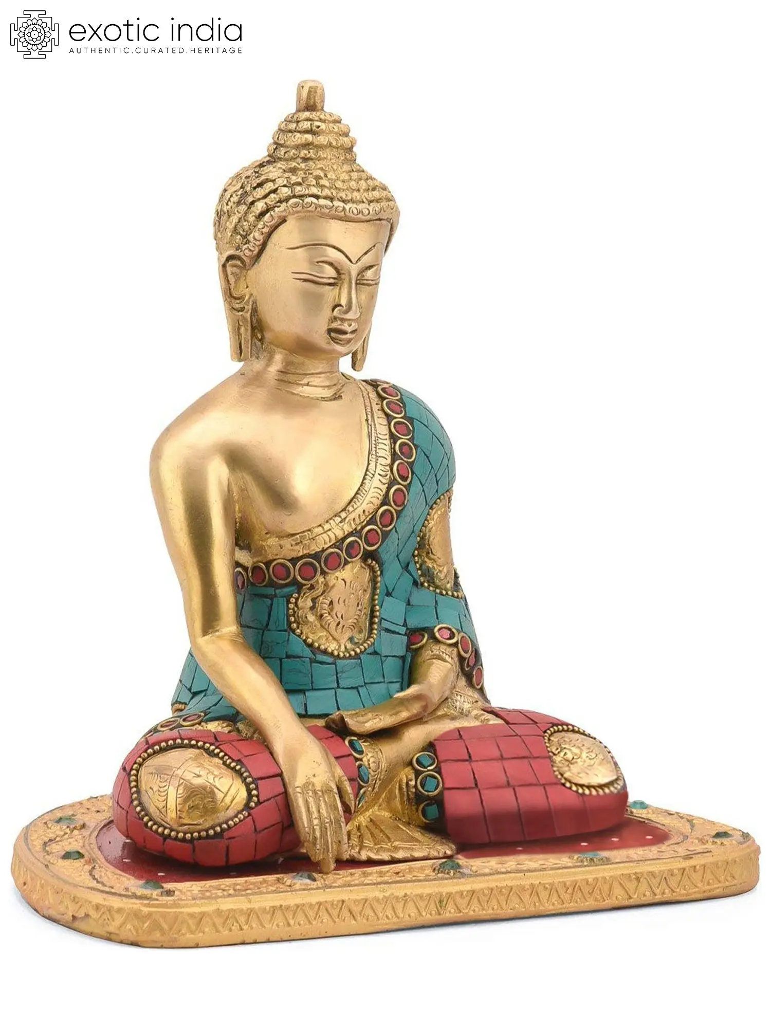 8" Shakyamuni, The Ashtamangala On His Robes In Brass | Handmade | Made In India
