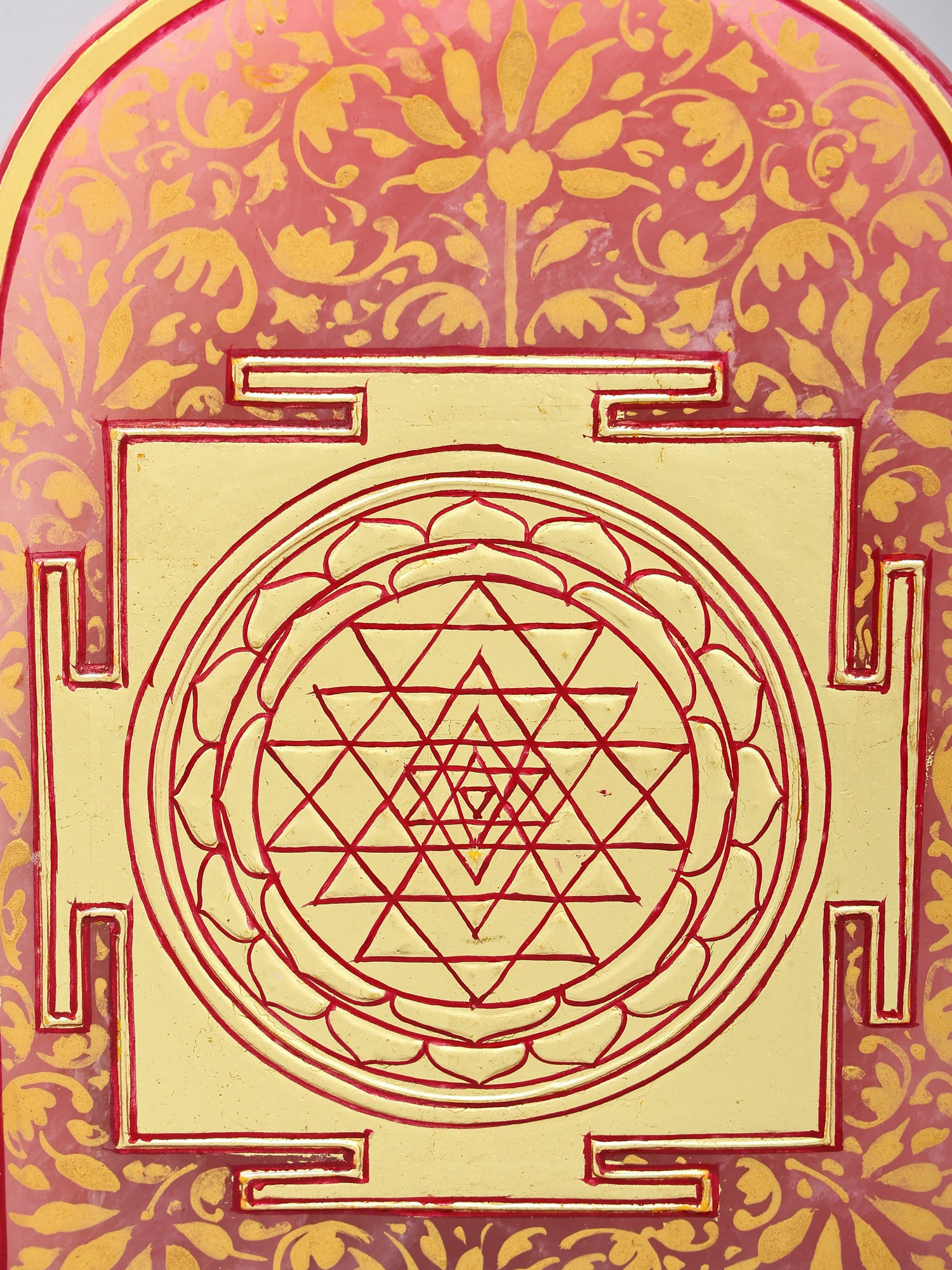 Features a meticulously crafted Shree Yantra, a powerful symbol of cosmic energy and prosperity.