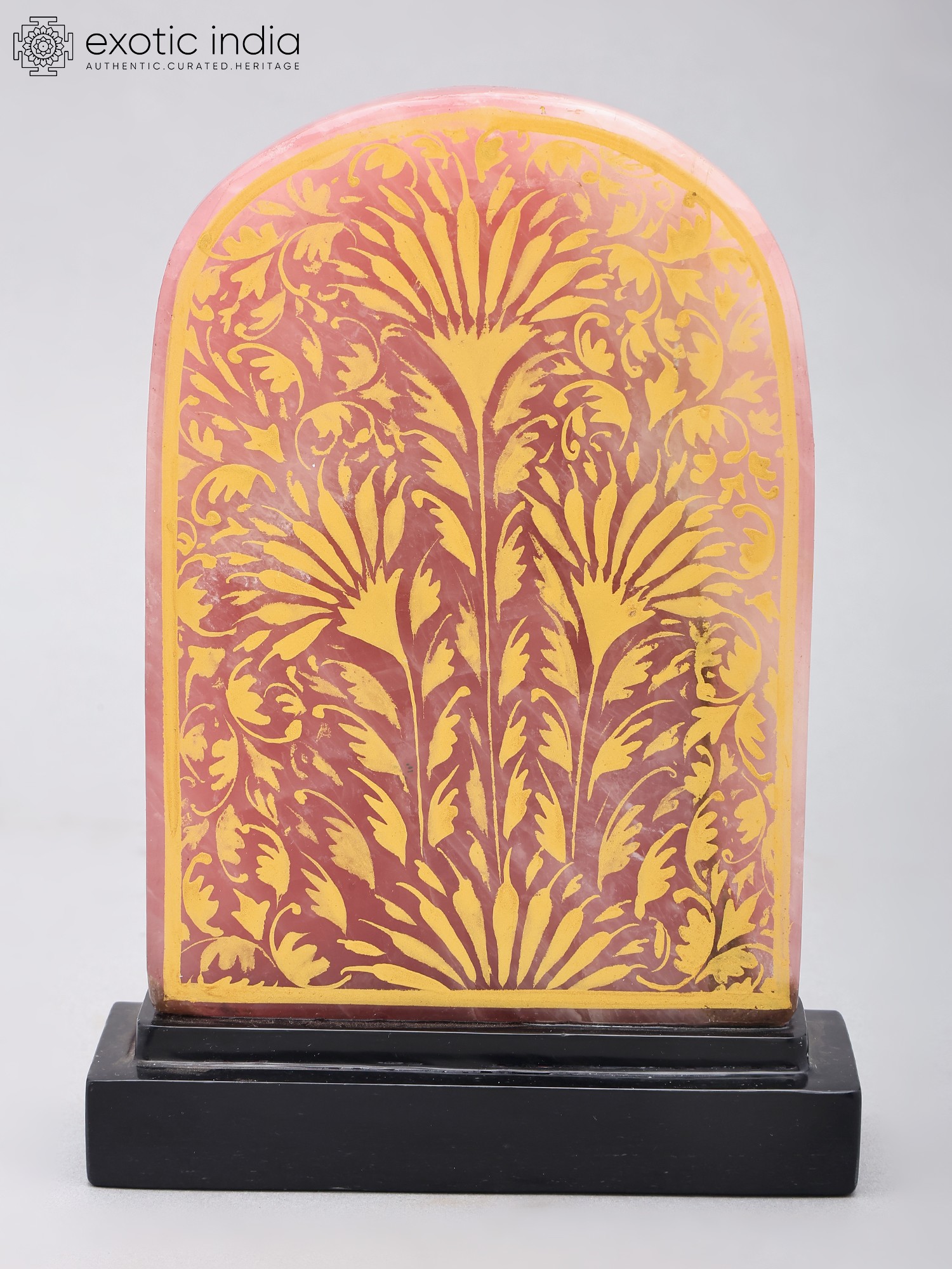 8" Sacred Kuber Yantra on Rose Quartz Gemstone | Vastu Yantra for Wealth & Abundance