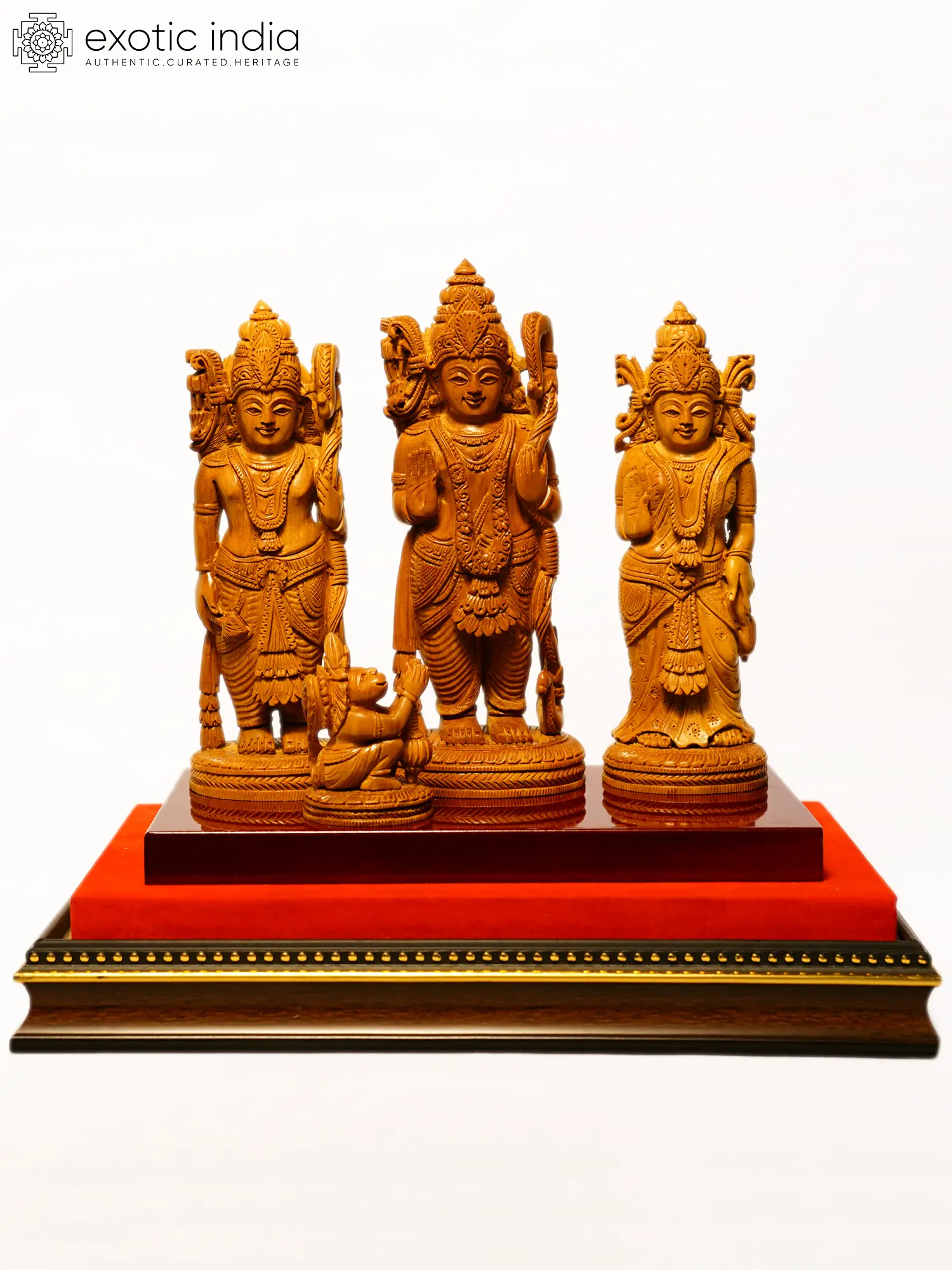 11" Lord Hanuman Holding Mountain of Sanjeevani Herbs | Sandalwood Carved Statue