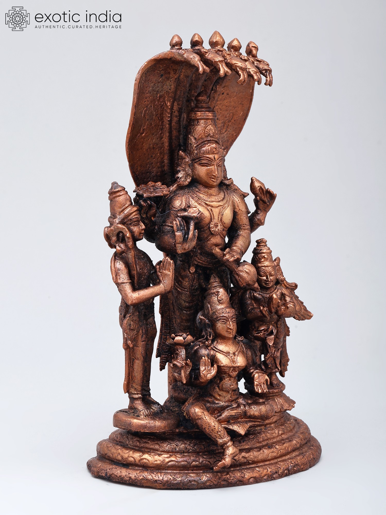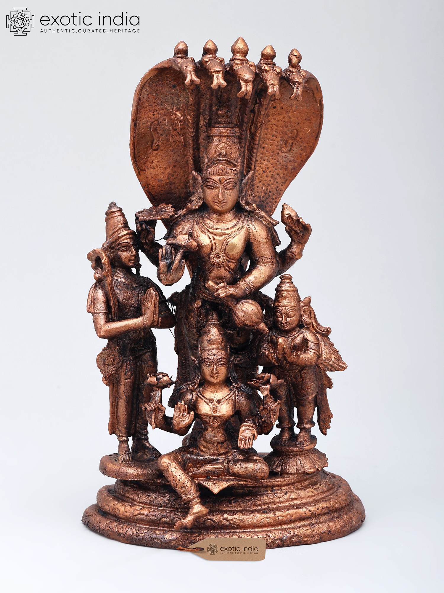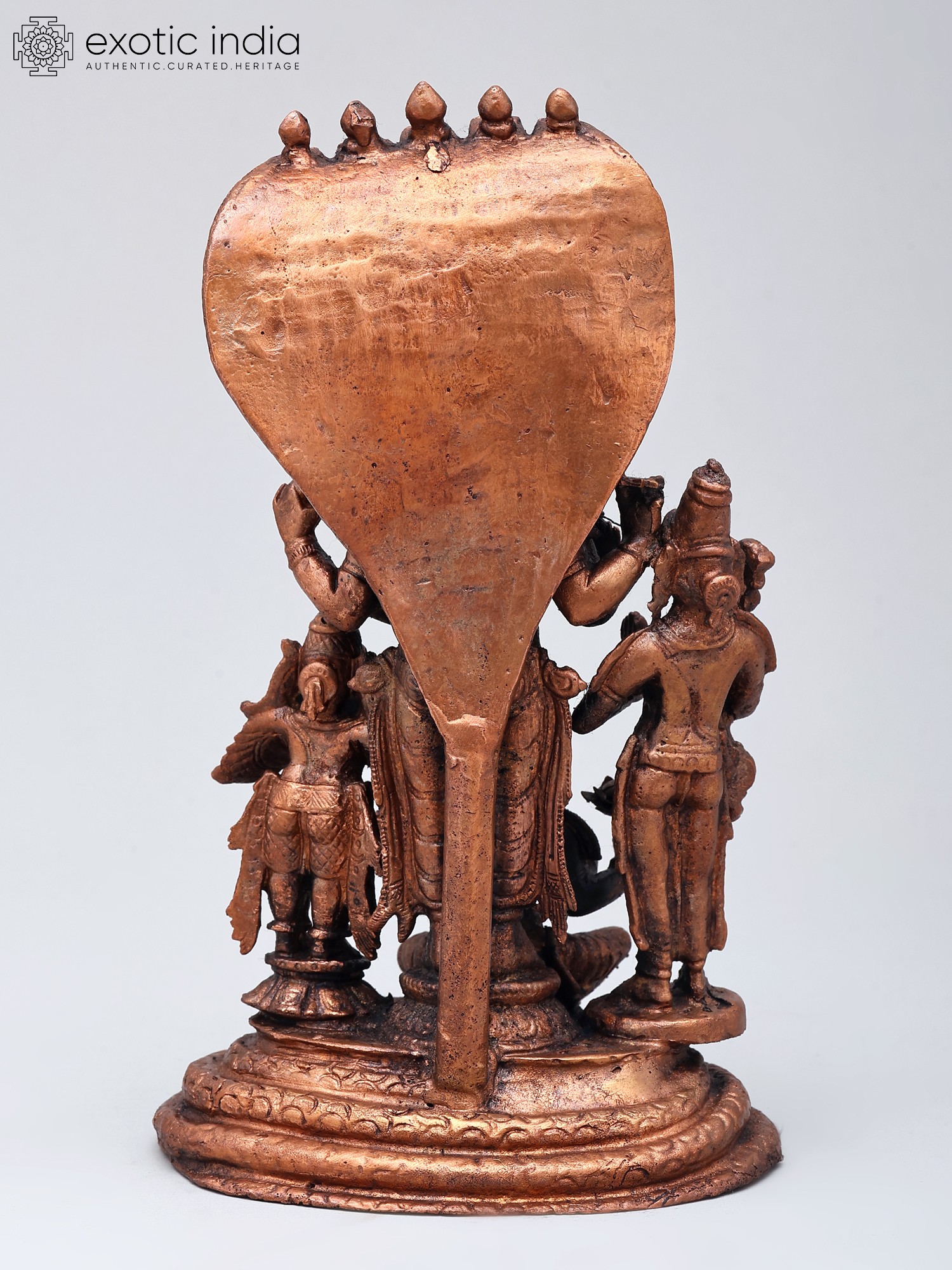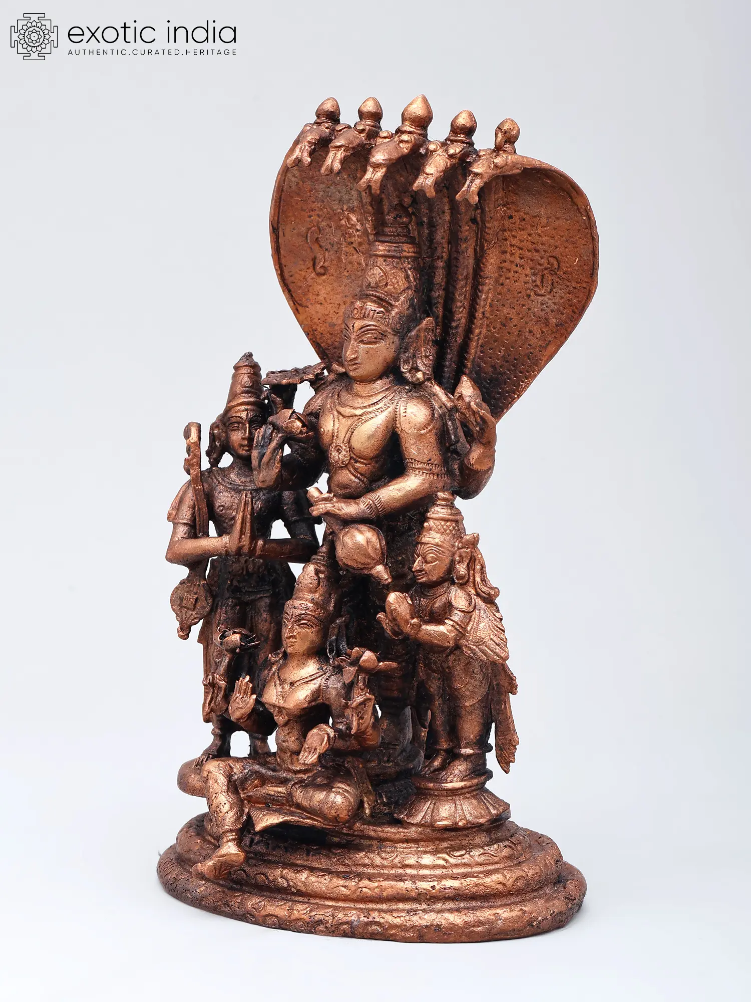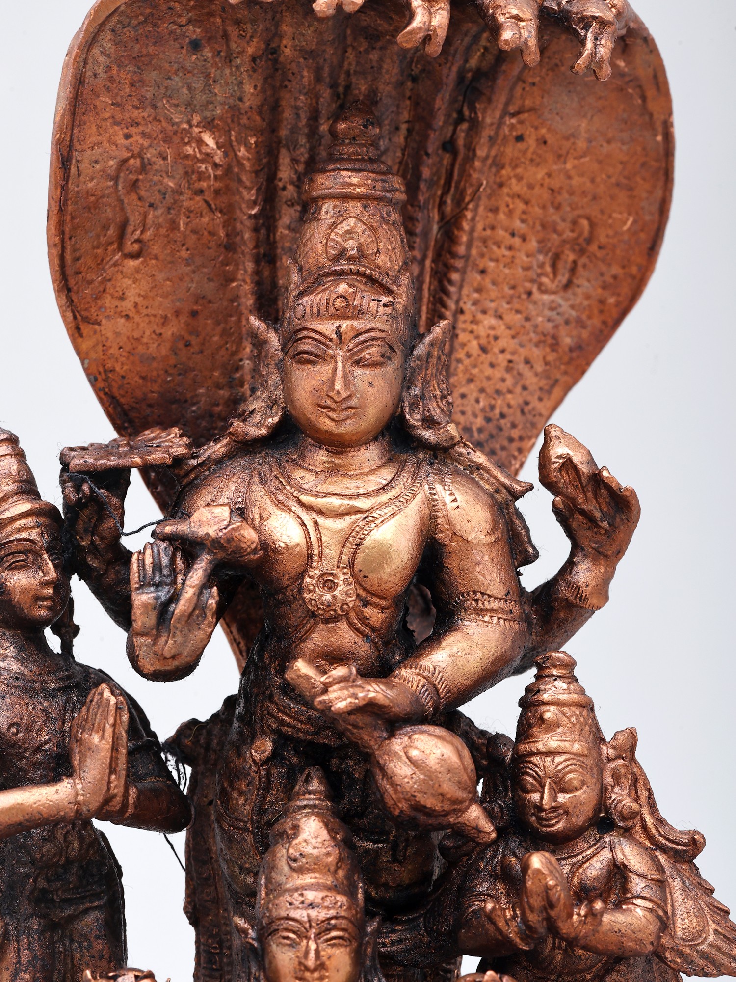 6" Small Shesha-Shayi Lord Vishnu with Devi Lakshmi and Garuda | Copper Statue