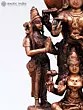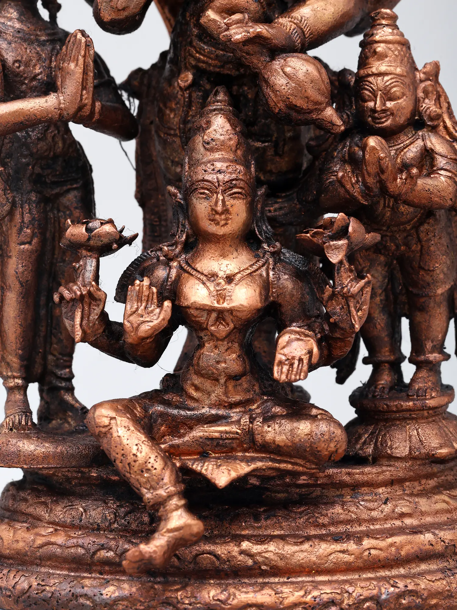 4" Small Lord Vishnu with Devi Lakshmi Seated on Kirtimukha Throne | Copper Statue