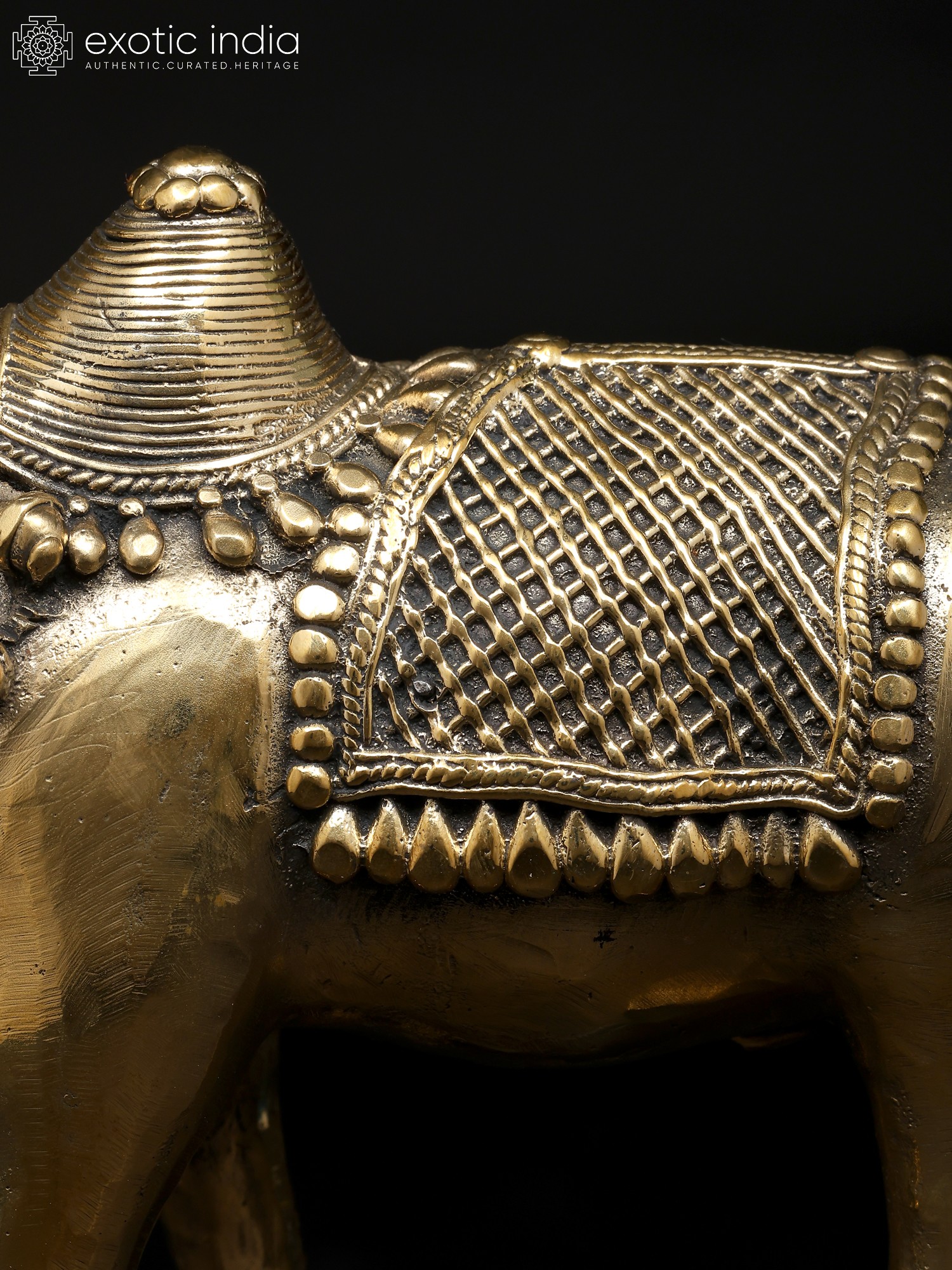 9" Dhokra Art Elephant Design Tribal Lamp in Brass