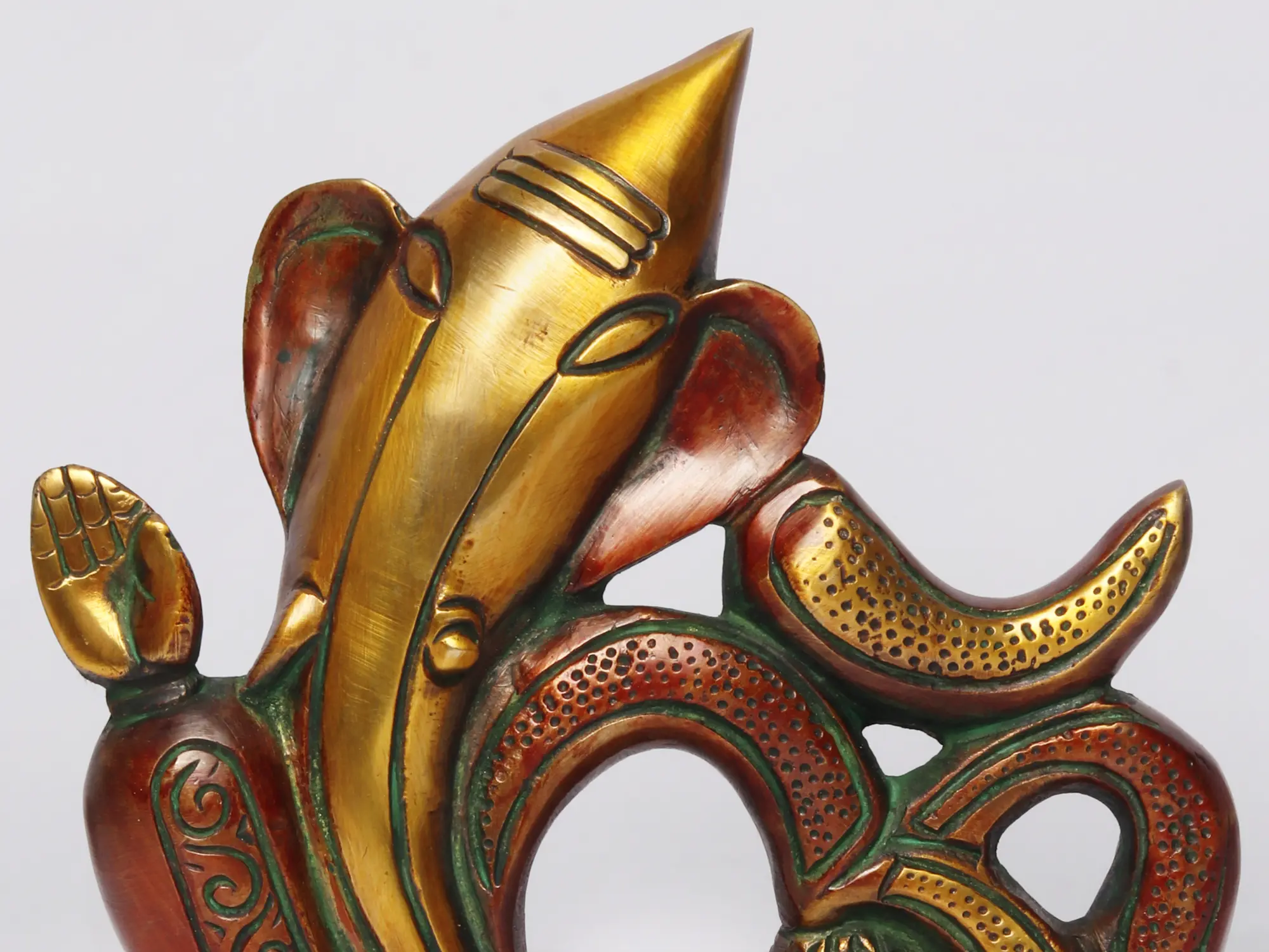 This stylized depiction of Lord Ganesha seamlessly integrates the sacred symbol of Om with the divine form of Ganesha, emphasizing their inseparable connection. Om, representing the ultimate reality, merges with Ganesha, the remover of obstacles and embodiment of wisdom.