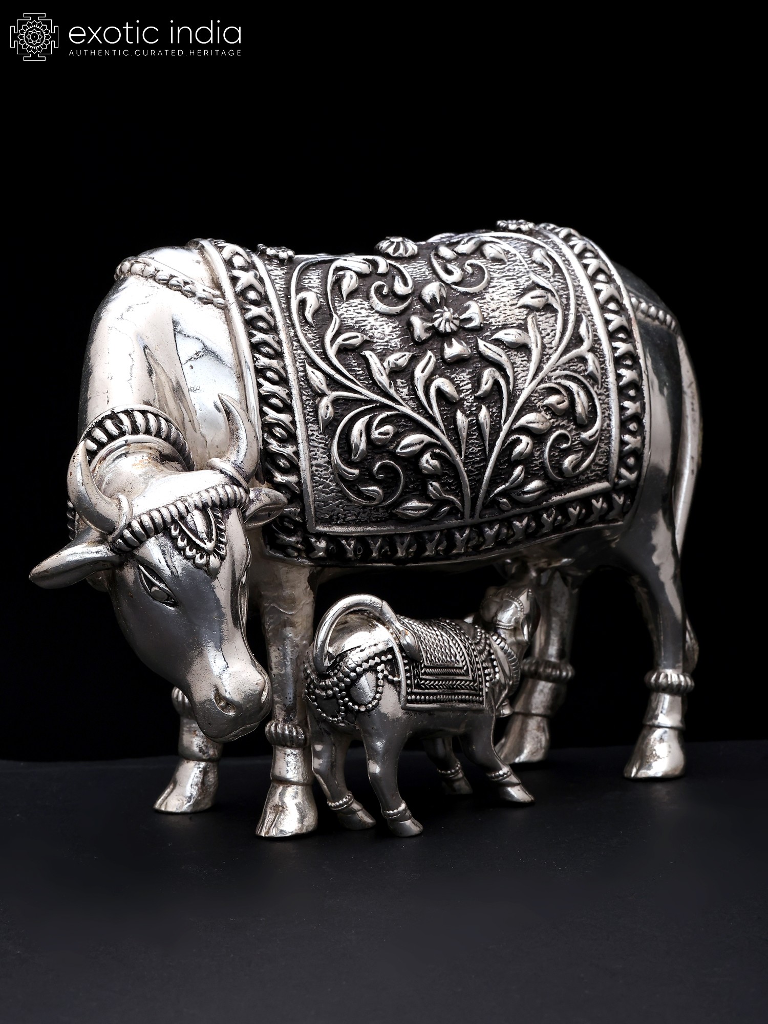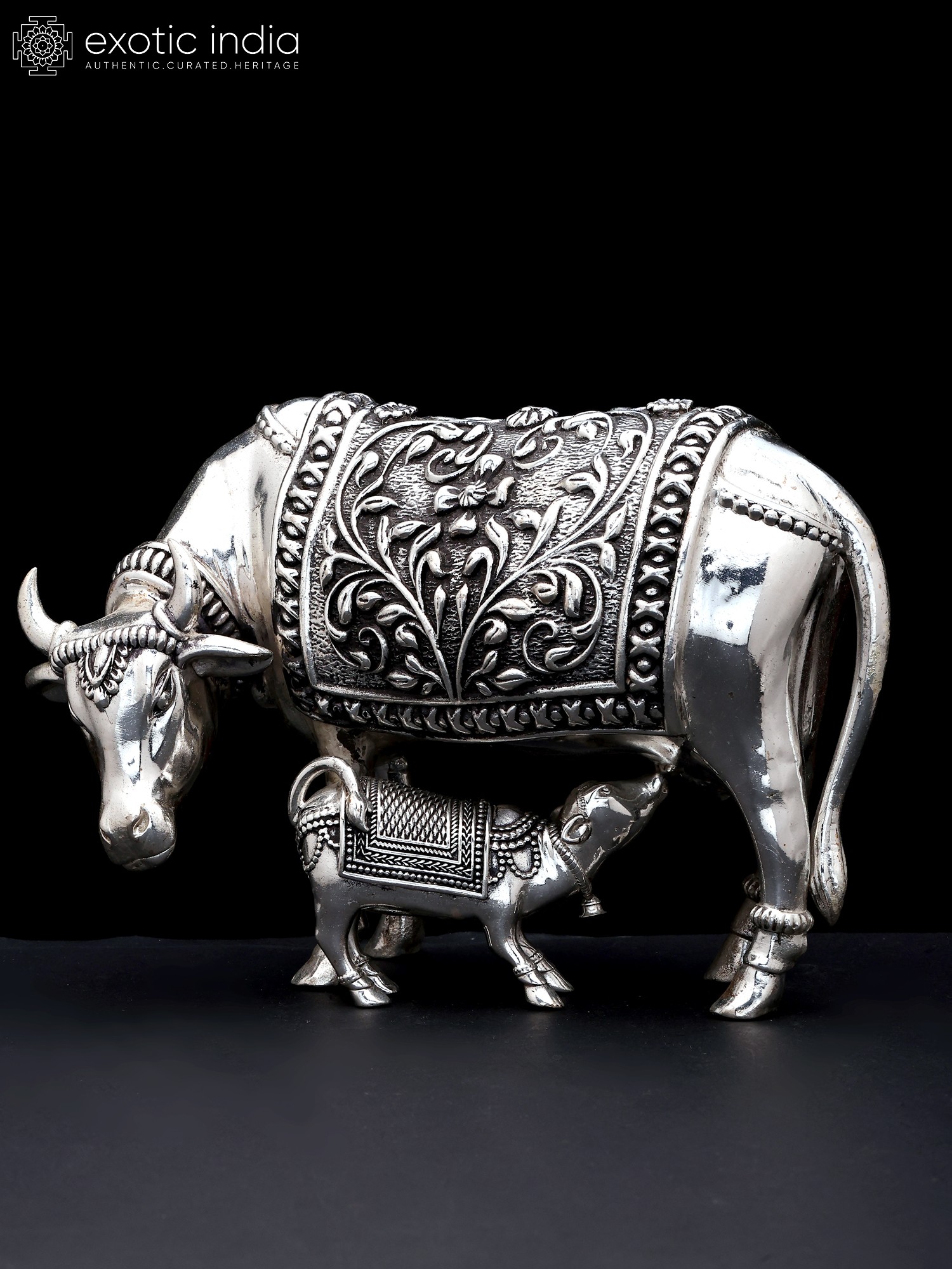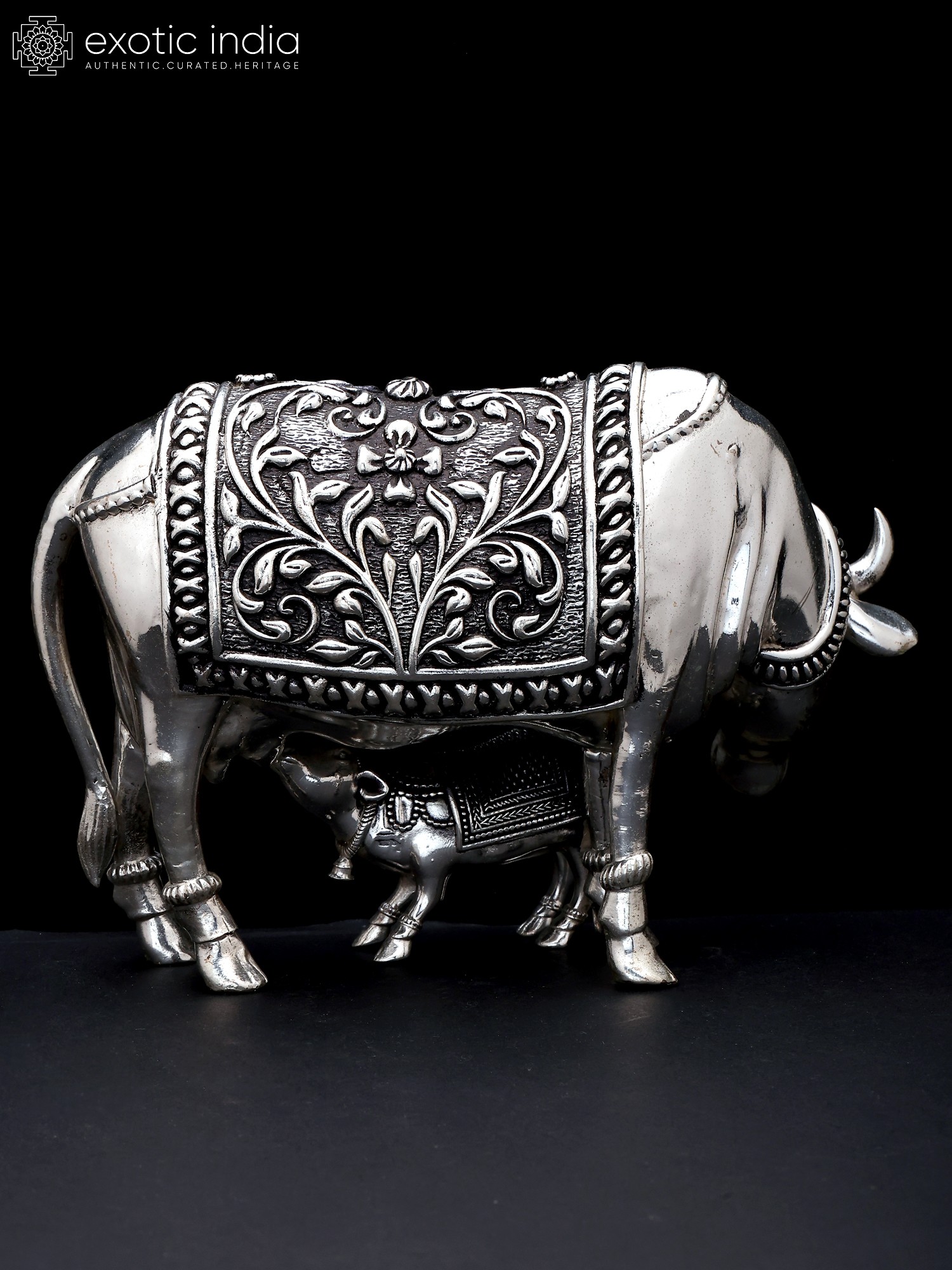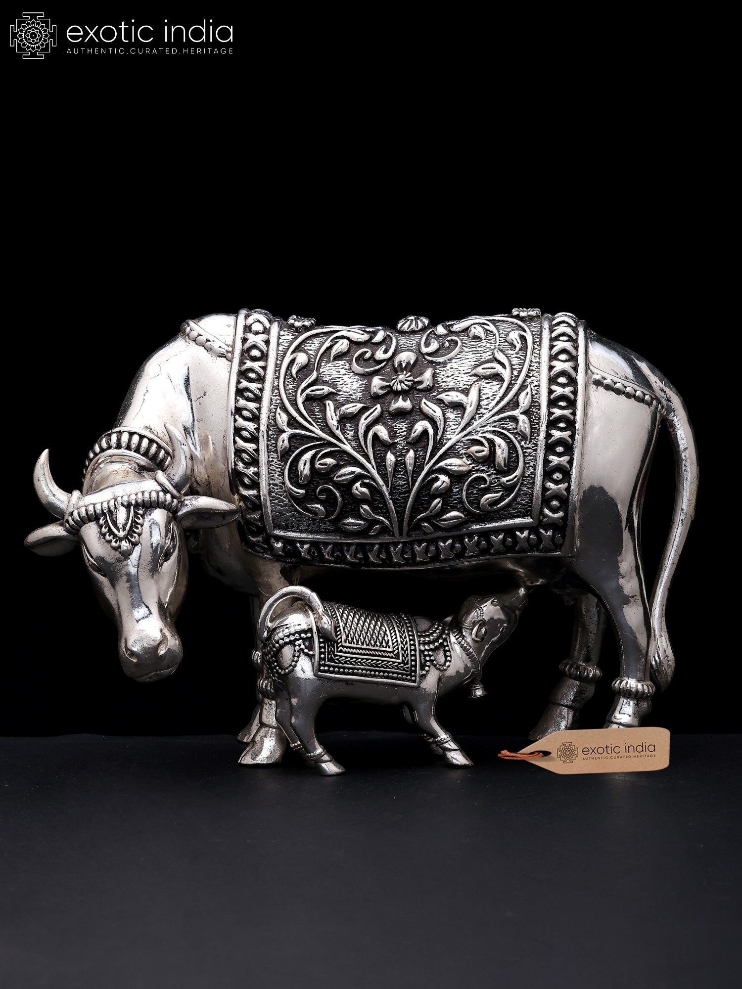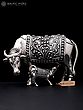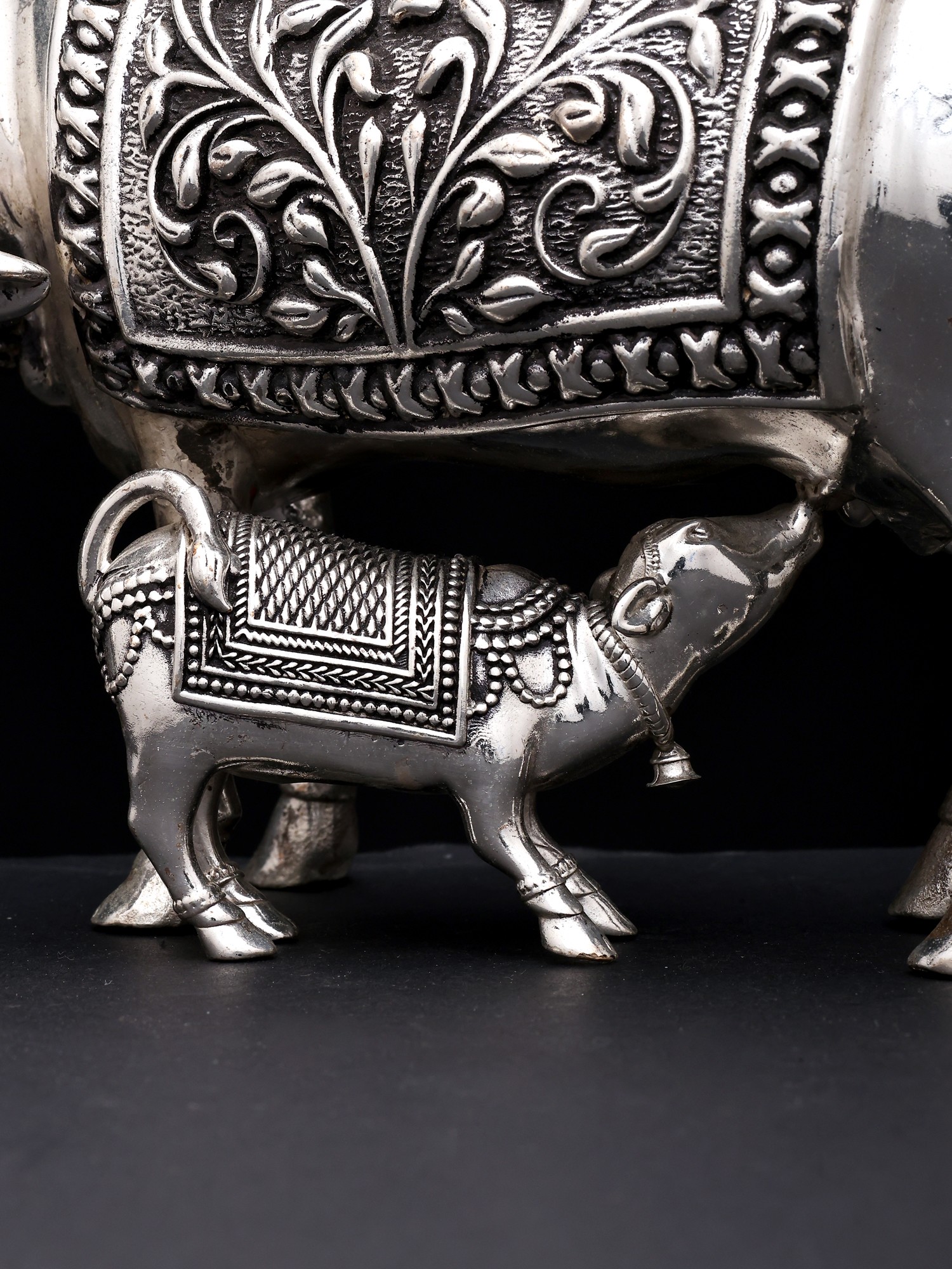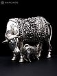 10" Brass Cow and Calf Gullak | Brass Statue with Inlay Work