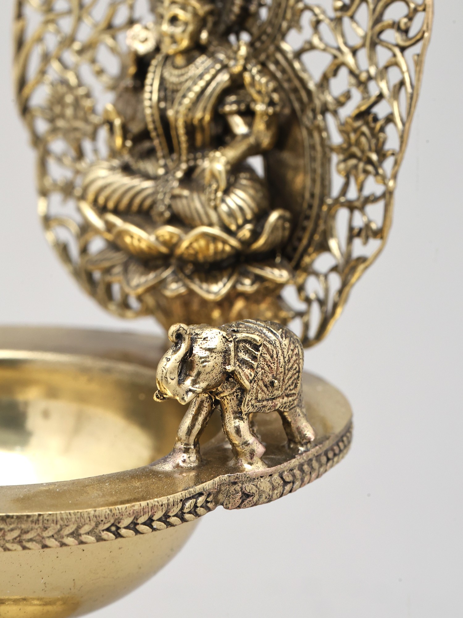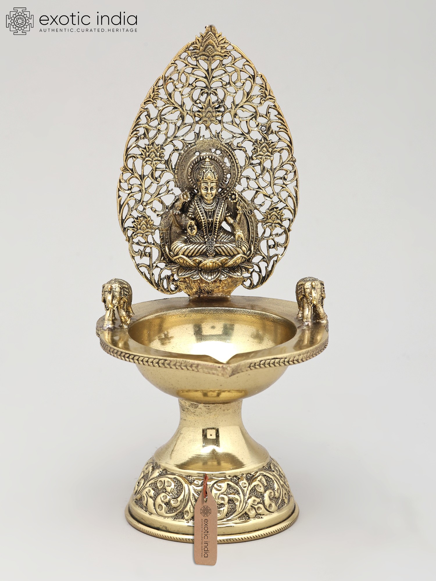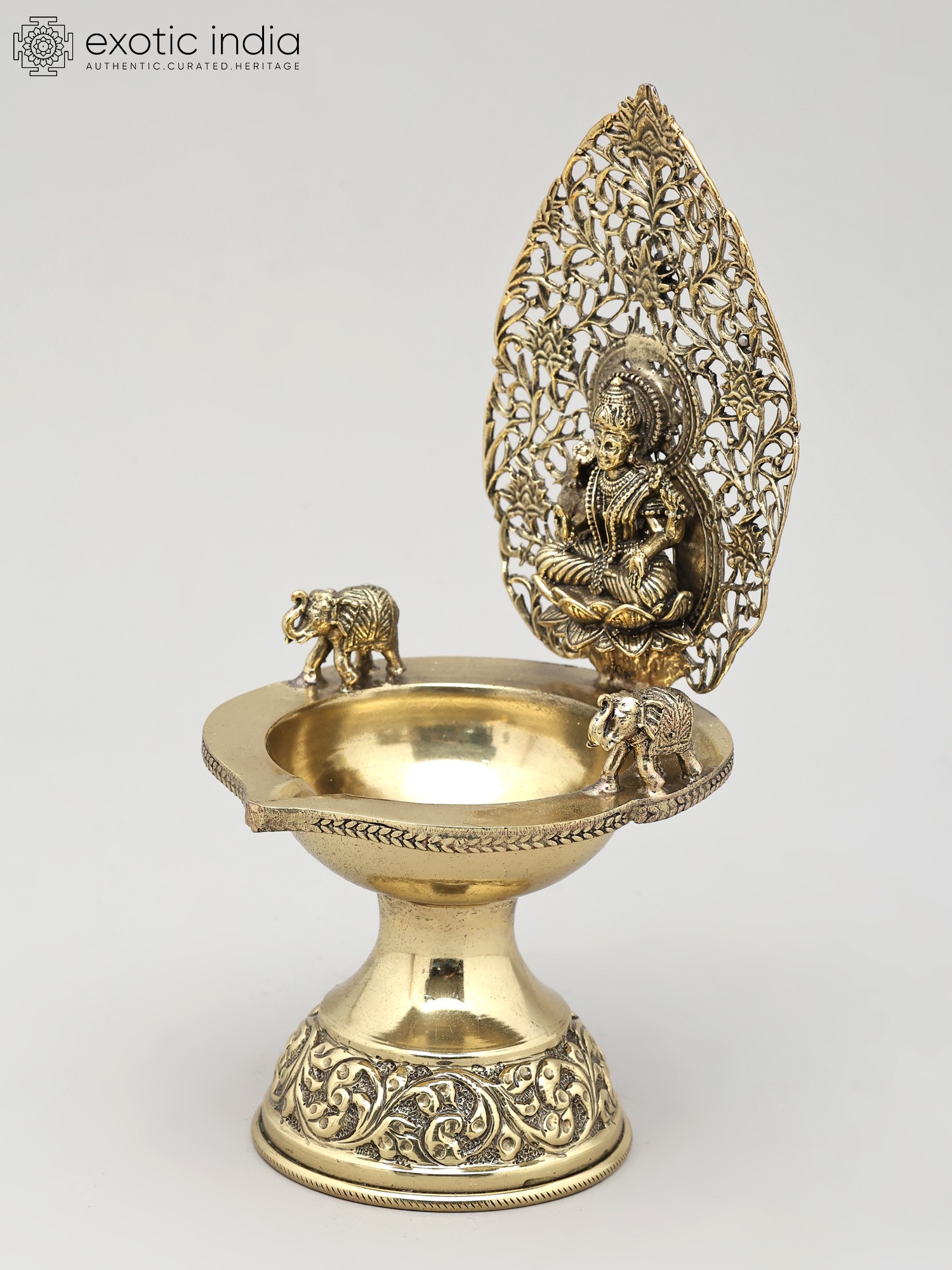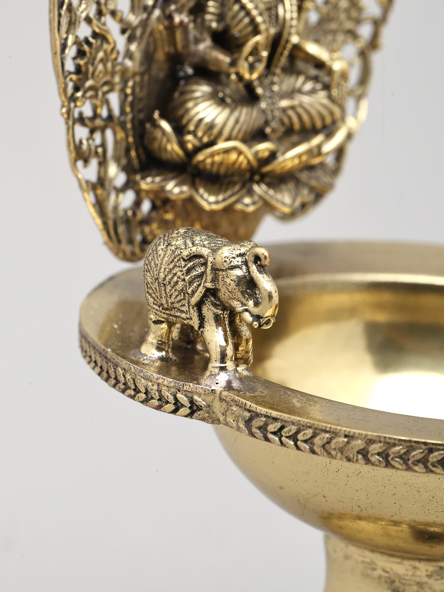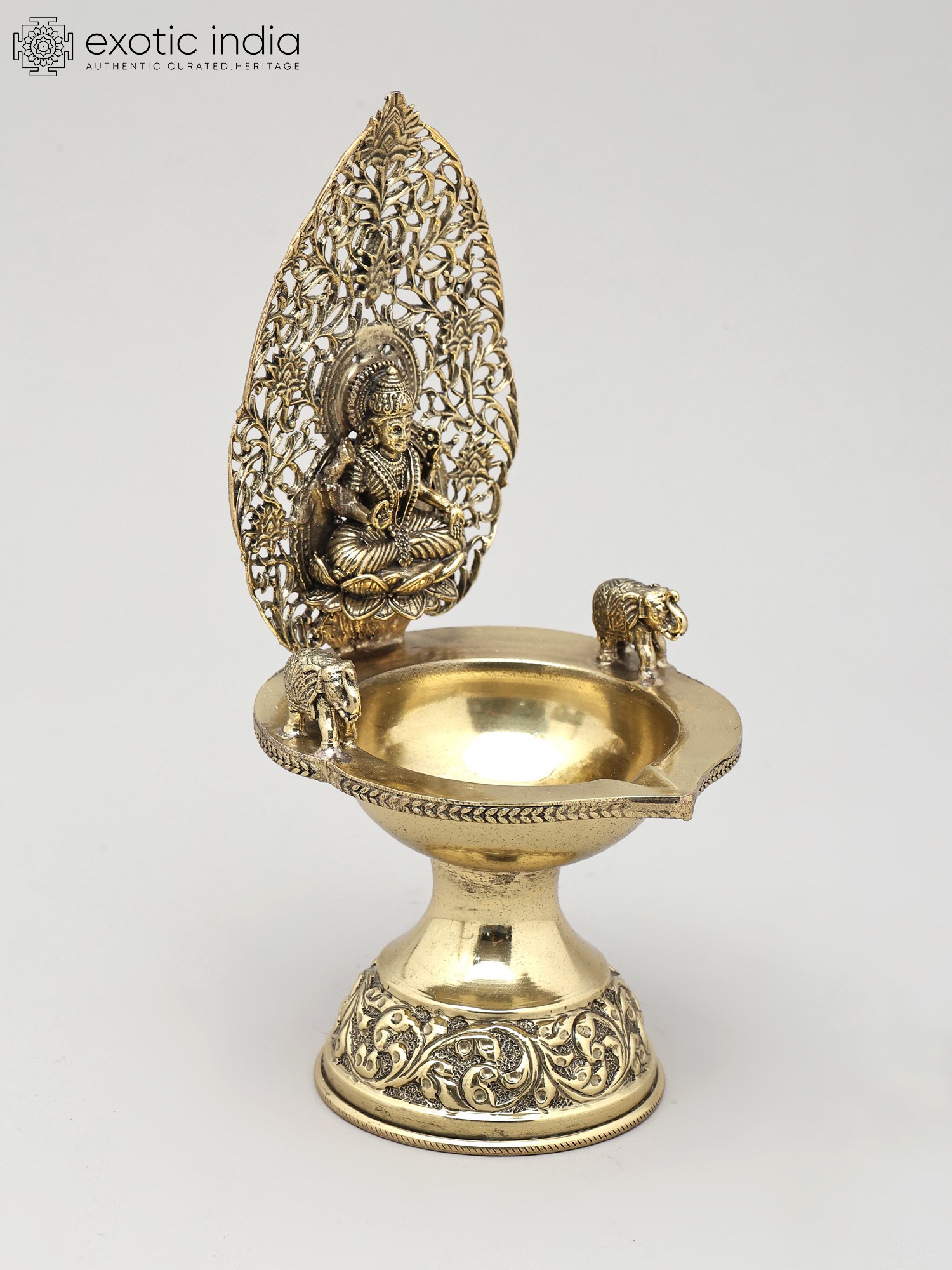 34" Five Wicks Goddess Lakshmi Lamp in Brass | Handmade | Made in India