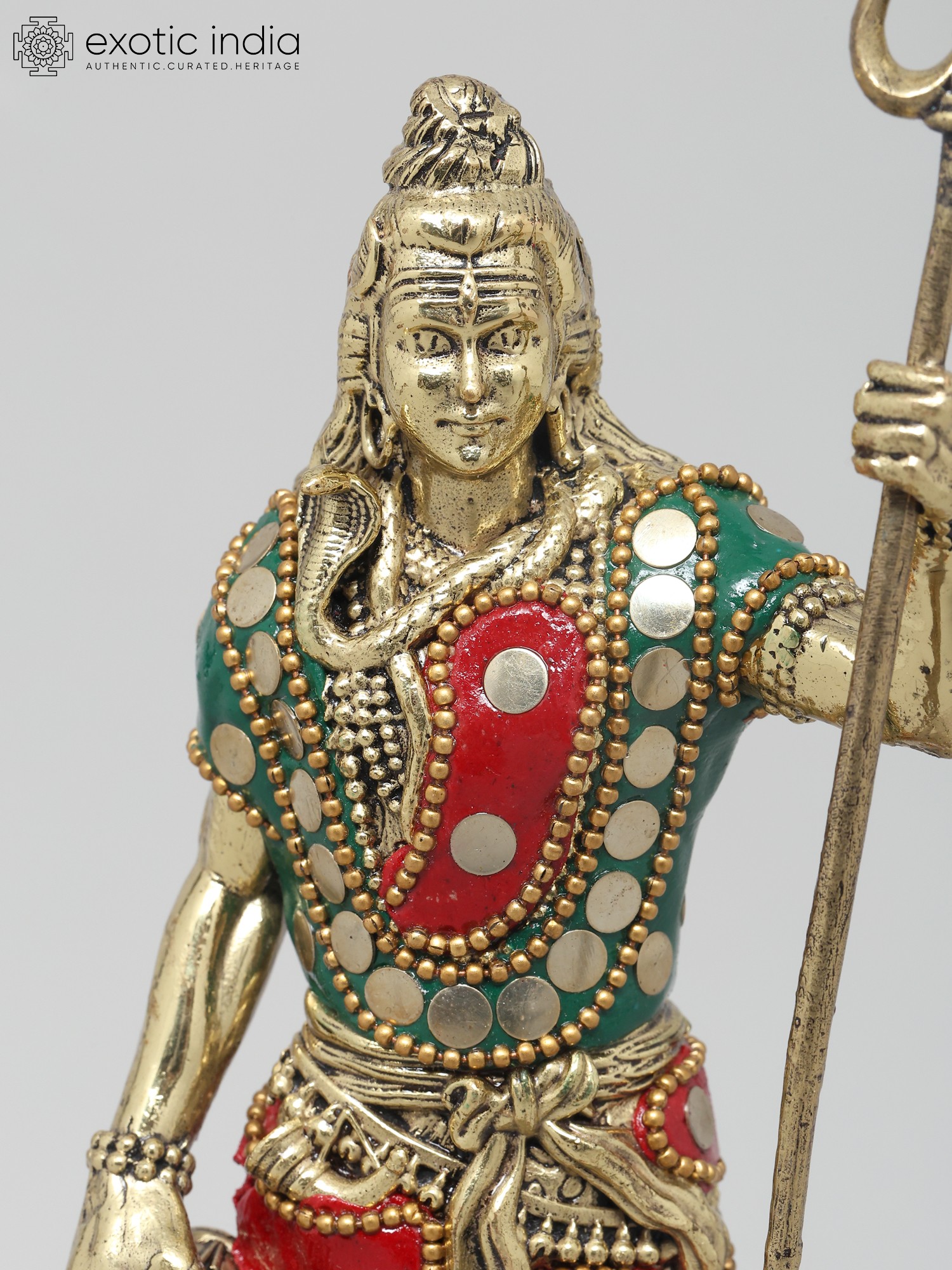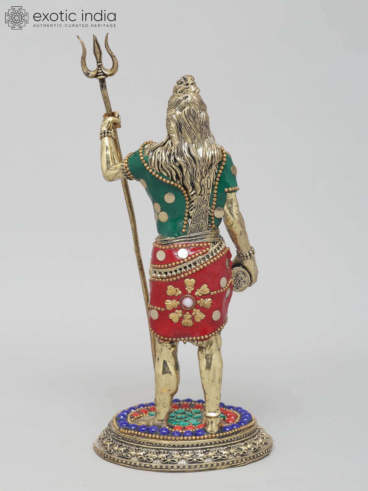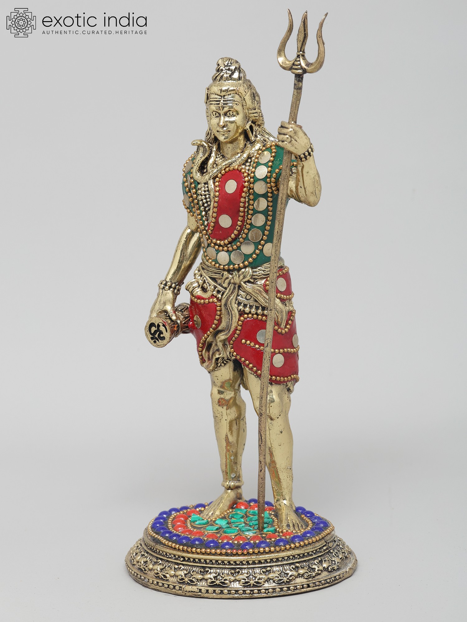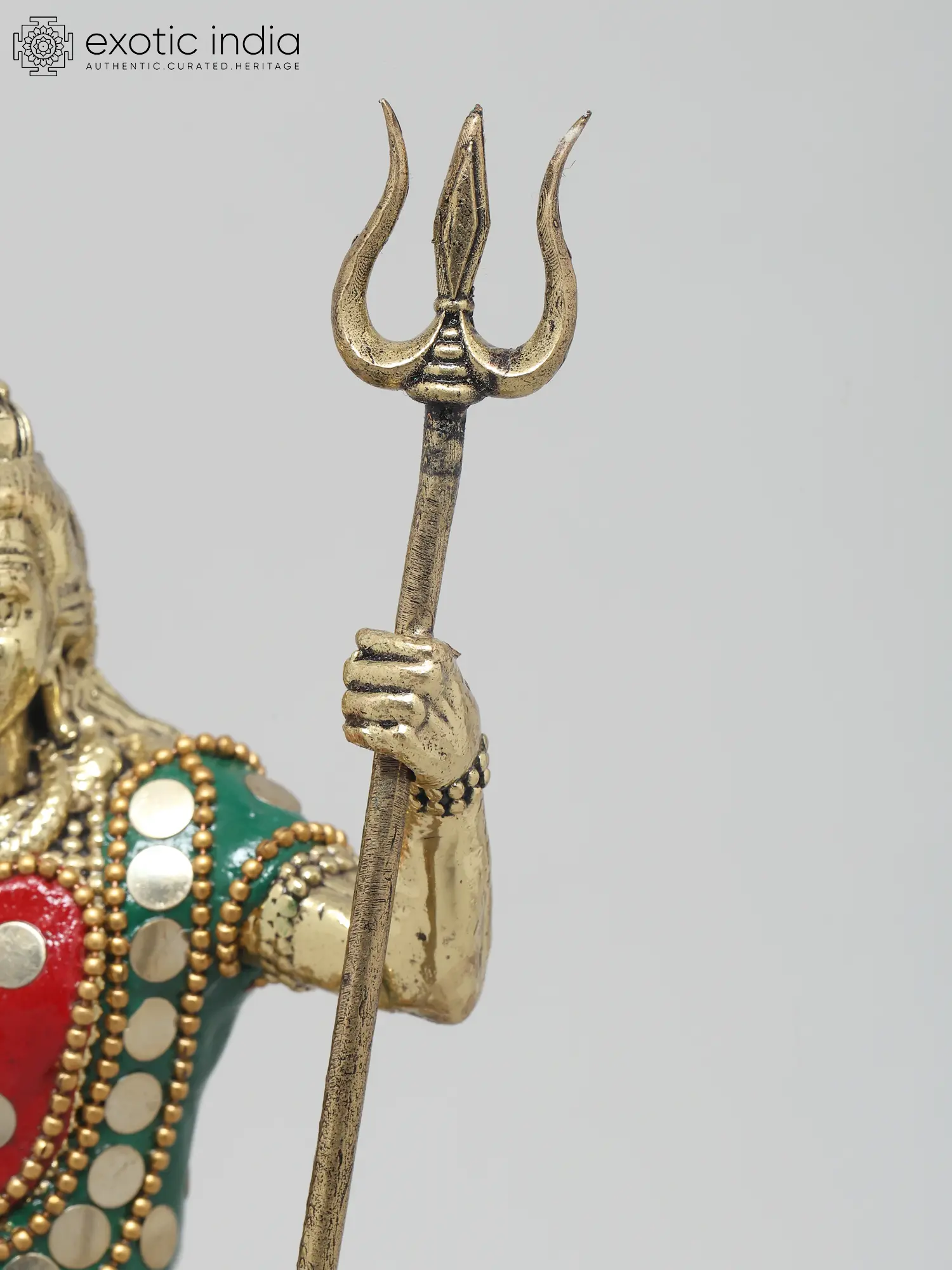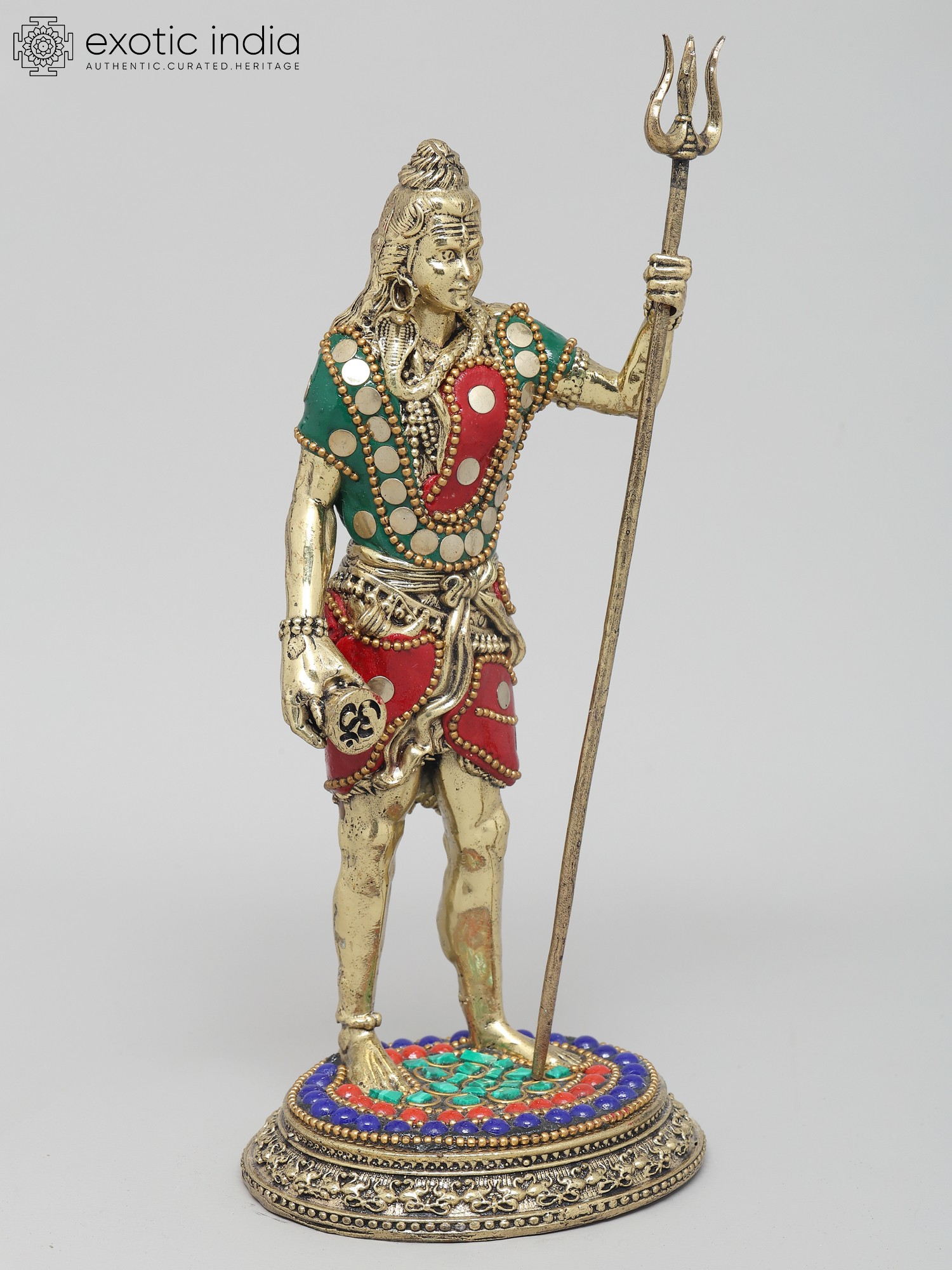 12" Superfine Standing Lord Shiva | Brass Statue with Inlay Work