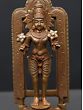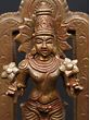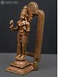 This exquisite 8-inch copper statue depicts Surya Deva, the Hindu god of the Sun, in a majestic standing posture. Crafted with meticulous detail, this piece is a testament to the rich artistic heritage of India. Surya, the radiant deity, is often depicted with a glorious halo, symbolizing his life-giving power and his role as the source of all energy. In this statue, his radiant energy is captured through the intricate detailing of his crown and the carefully rendered rays emanating from his head. He holds lotus flowers, sacred symbols of purity and enlightenment, in his hands. The statue is mounted on an intricately carved pedestal that enhances its regal presence. This statue is more than just a decorative piece; it's a captivating representation of a central figure in Hindu mythology.