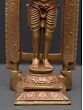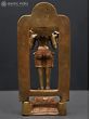 This statue is meticulously crafted from high-quality copper, showcasing the skill and artistry of Indian artisans. The rich golden hue of the copper is enhanced by the intricate detailing and the reddish highlights that adorn the statue and its pedestal, creating a visually stunning piece. The level of detail, from the folds of the garment to the delicate floral patterns on the pedestal, is truly remarkable. The use of copper, a metal known for its durability and reflective qualities, is fitting for a representation of the sun's radiant energy. The statue's solid construction ensures its longevity and its ability to withstand time, making it a treasured heirloom.