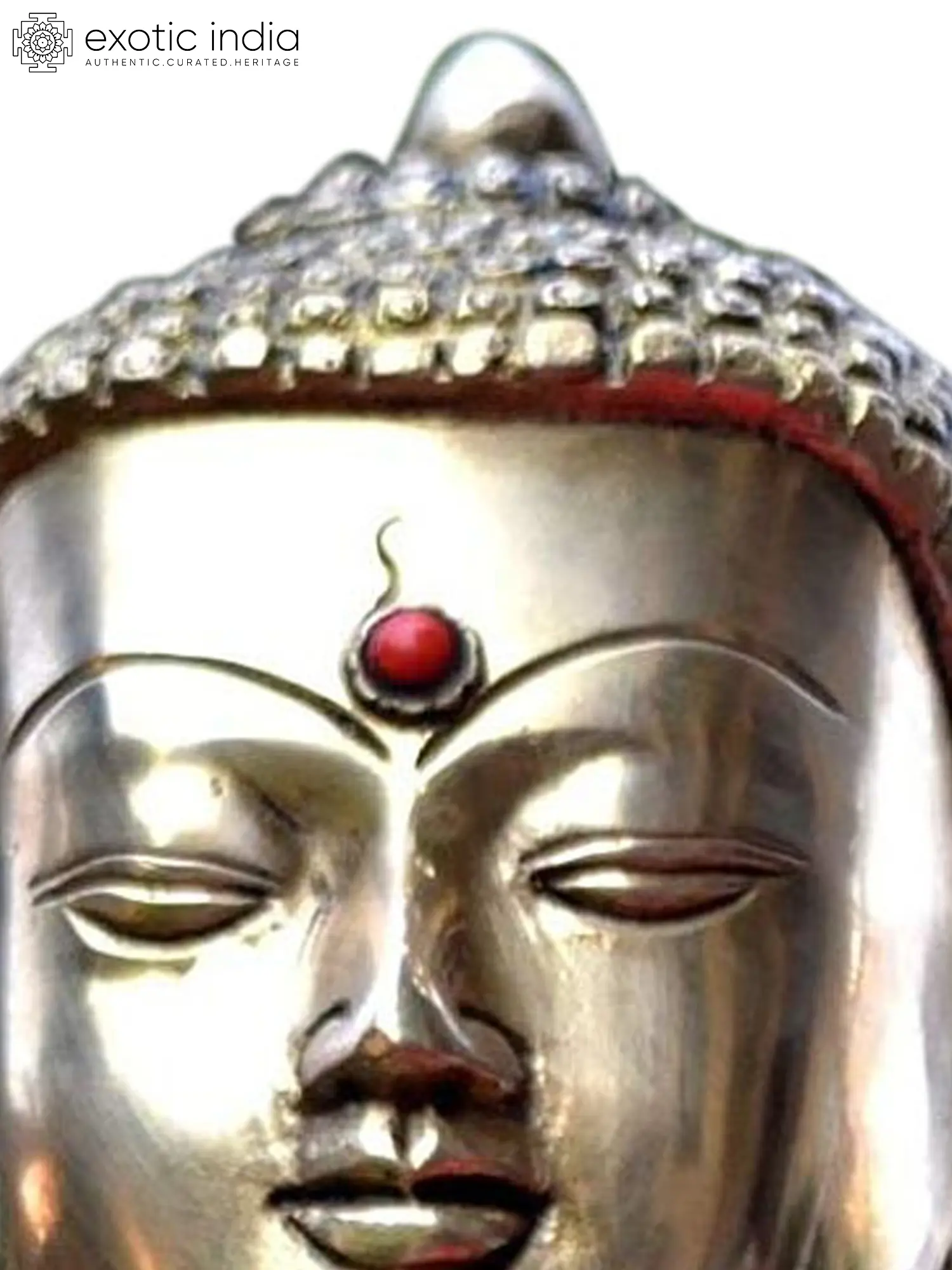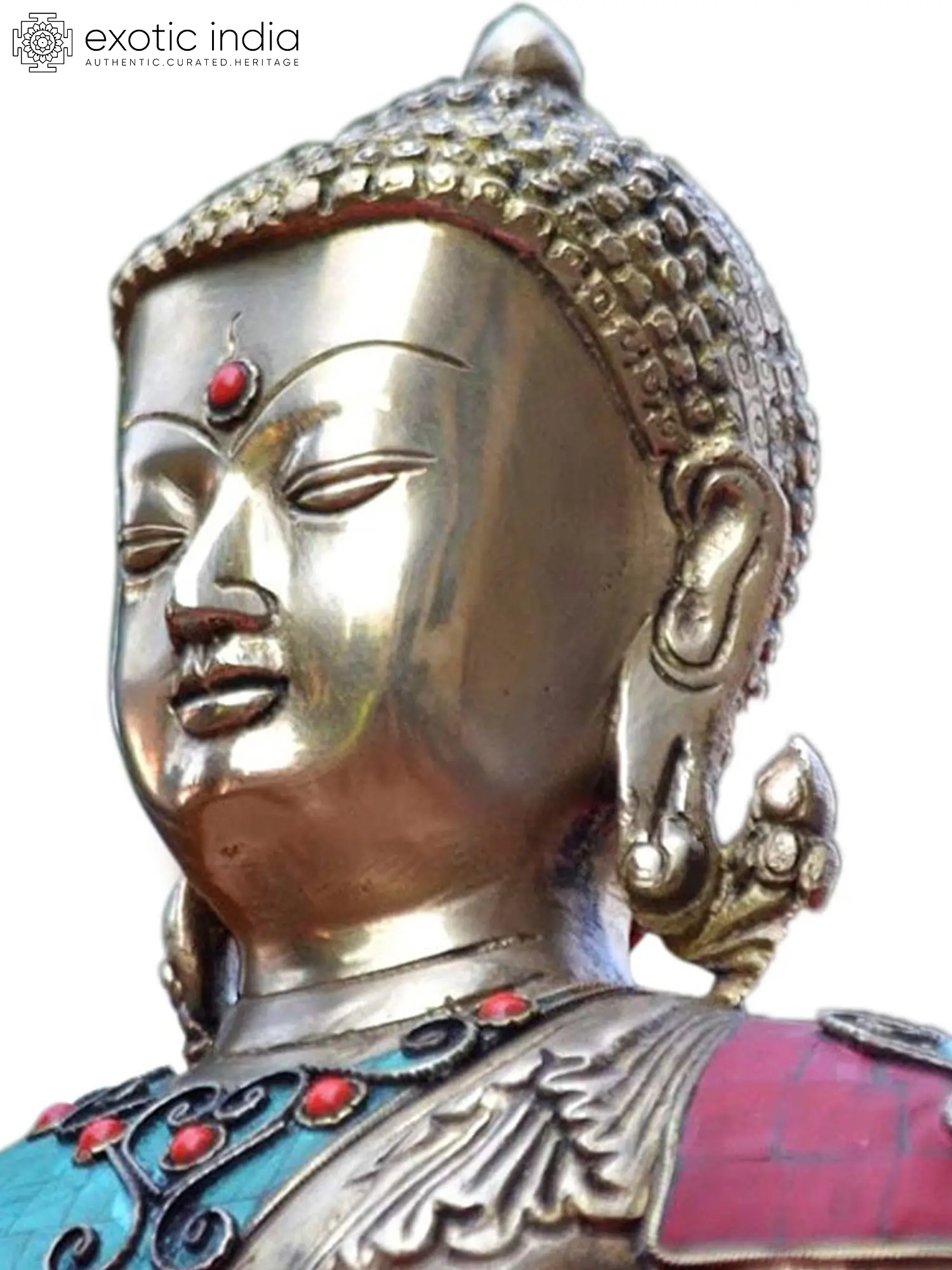 8" Tibetan Buddha Head with Inlay In Brass | Handmade | Made In India