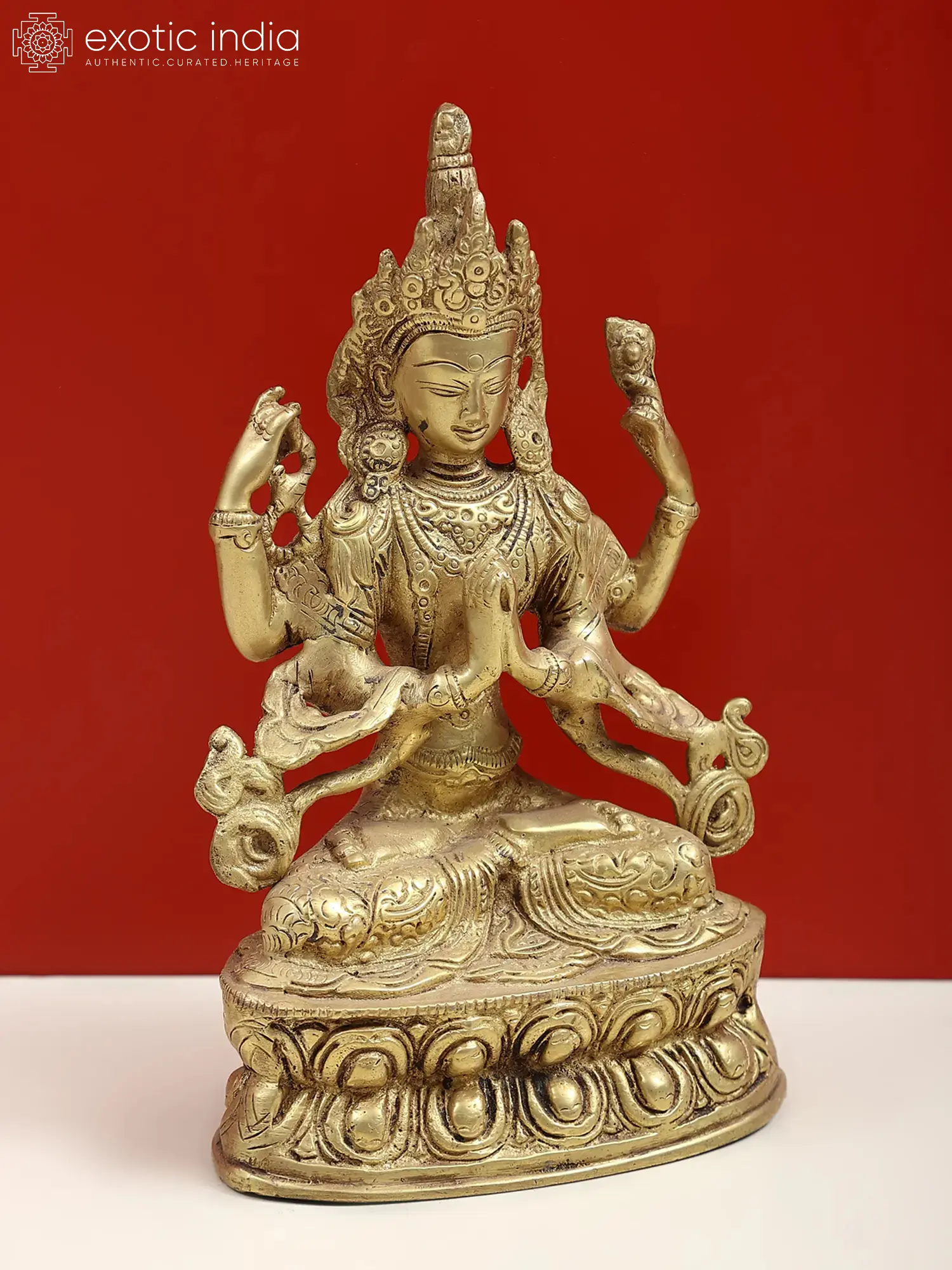 8" Tibetan Buddhist Deity Chenrezig In Brass