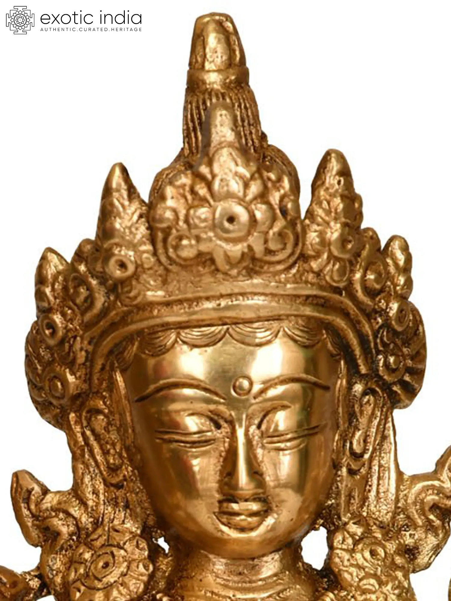 8" (Tibetan Buddhist Deity) Goddess White Tara In Brass | Handmade | Made In India