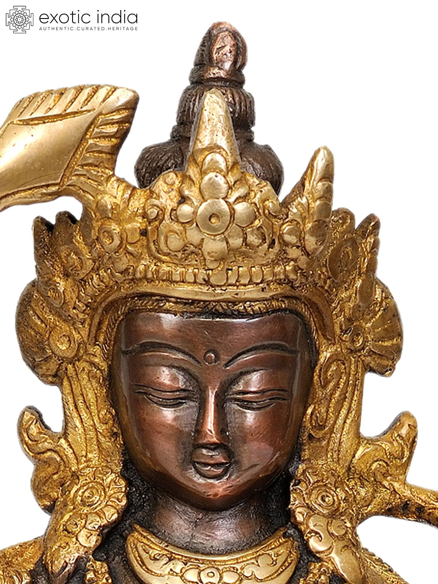 8" Tibetan Buddhist Deity Manjushri In Brass | Handmade | Made In India