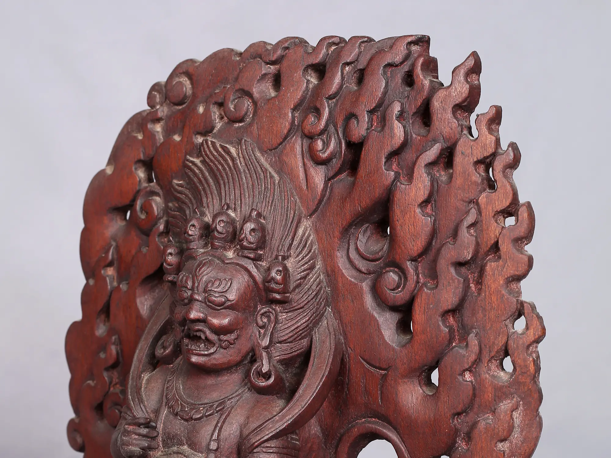 16" Wooden Tibetan Buddhist Deity Vajrapani Sculpture