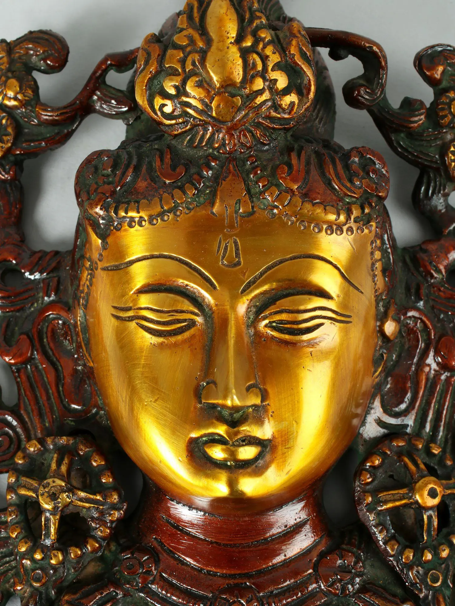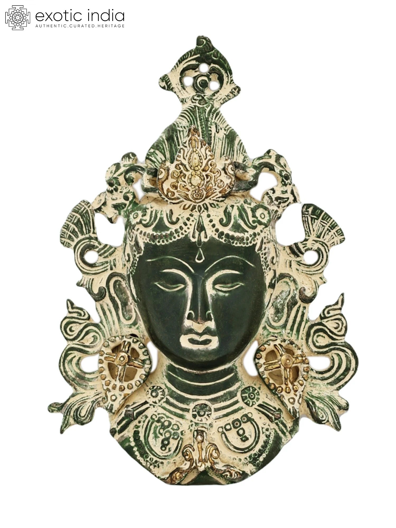 8" Tibetan Buddhist Goddess Tara Mask (Wall Hanging) In Brass | Handmade | Made In India