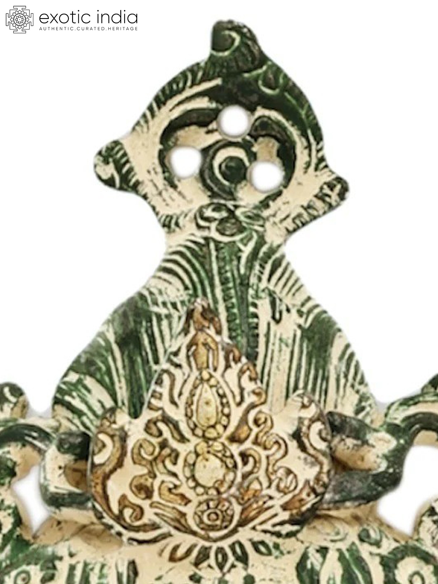 Enrich your sacred space or living area with the serene and powerful presence of this exquisite brass mask, depicting the revered Tibetan Buddhist goddess Tara. This wall hanging is more than just a decorative piece; it is a conduit to spiritual tranquility and a testament to the profound artistic heritage of India. Crafted by skilled artisans, the mask embodies the grace and compassion that Tara, the "Mother Goddess," is known for. Her calm, serene expression invites contemplation and a sense of inner peace, making it a perfect addition to any setting where mindfulness and tranquility are sought. The intricate details and the warm luster of the brass are a hallmark of traditional craftsmanship, passed down through generations.