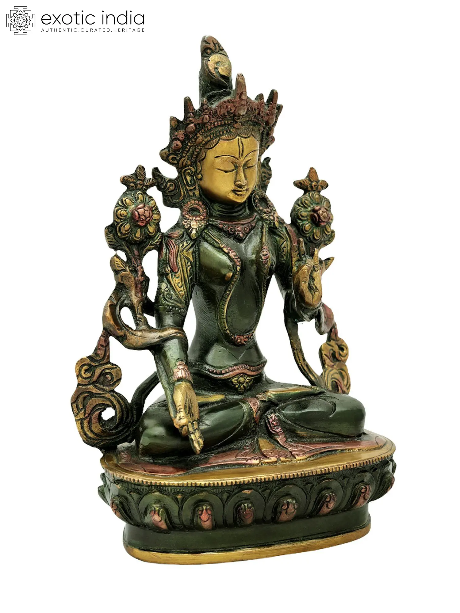 This magnificent and deeply spiritual piece of art is the brass statue of White Tara. Buddhism reveres White Tara as a goddess of mercy, innocence, and the power to put an end to suffering. The use of brass in the statue's rendition of White Tara makes it more ageless and polished. This imaginative interpretation serves as a sign of blessings, healing, and protection as well as a source of inspiration and regard for anybody seeking spiritual guidance and solace. The rich cultural traditions and symbolism associated with White Tara in Buddhism are more accurately depicted in this sculpture because of the use of brass.