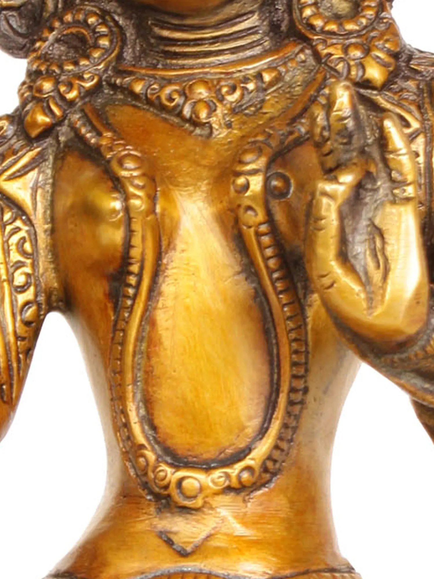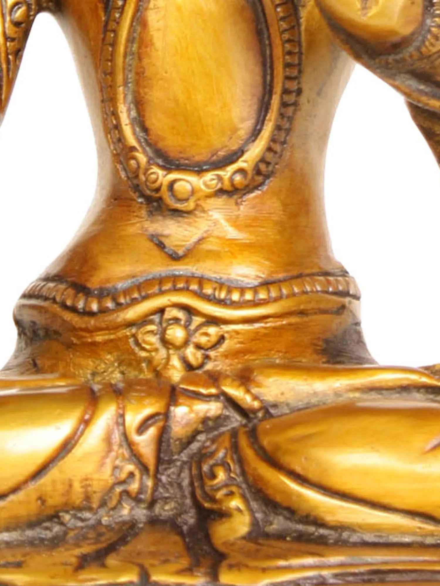 A White Tara statue fashioned from brass is not only a captivating work of art but also a deeply spiritually significant representation. White Tara, a revered figure in Buddhism, embodies compassion, purity, and the power to alleviate suffering. In this portrayal, the serene and graceful beauty of White Tara is masterfully captured, and the use of brass imparts a sense of enduring elegance to the statue. Crafted from this noble material, the piece serves as a symbol of healing, protection, and blessings, becoming a focal point for reverence and inspiration for those seeking solace and spiritual guidance. The incorporation of brass adds to the artistic and cultural value of the sculpture, underscoring the rich traditions and symbolism associated with White Tara in Buddhism.