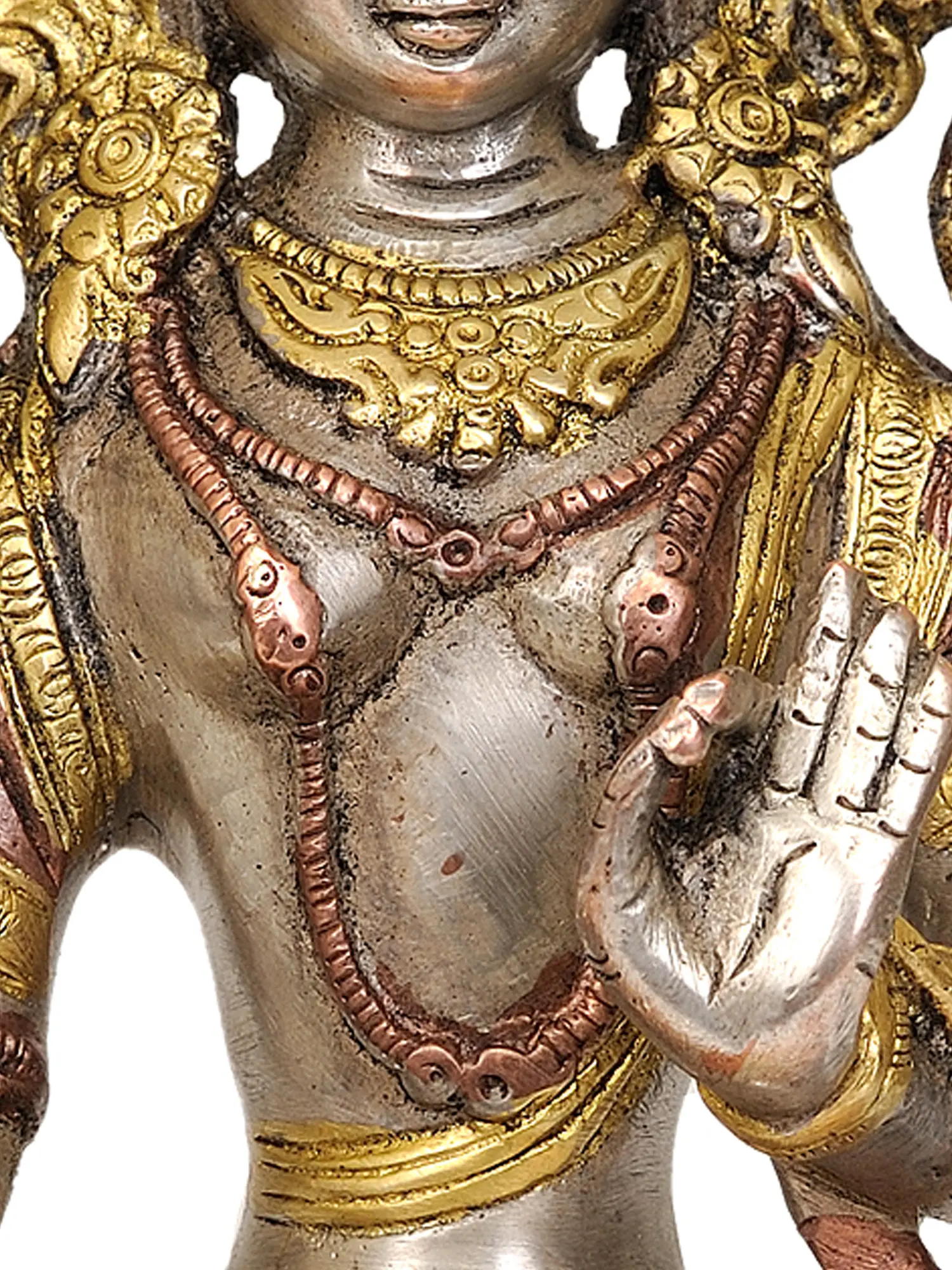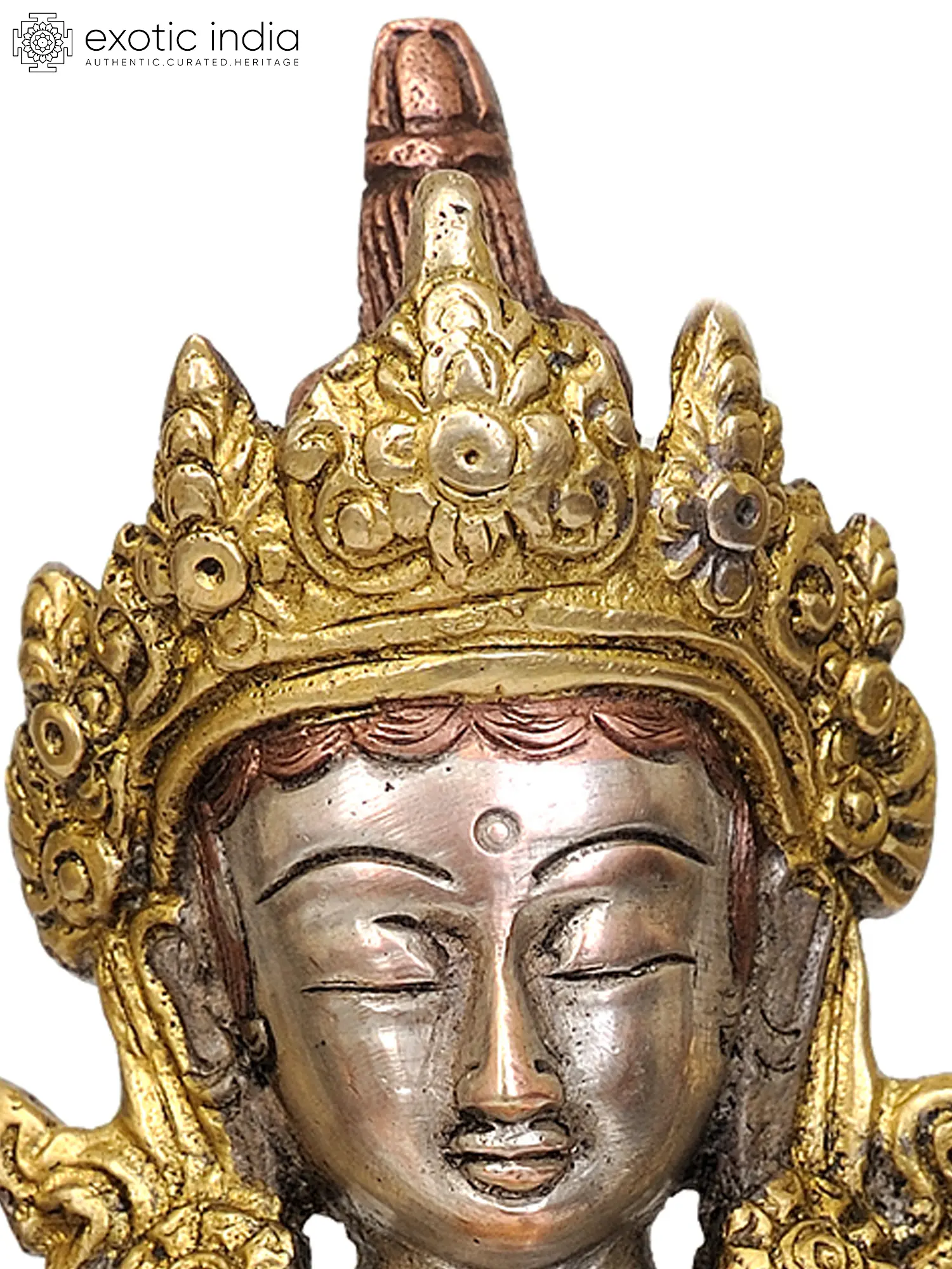 8" Tibetan Buddhist Goddess White Tara In Brass | Handmade | Made In India
